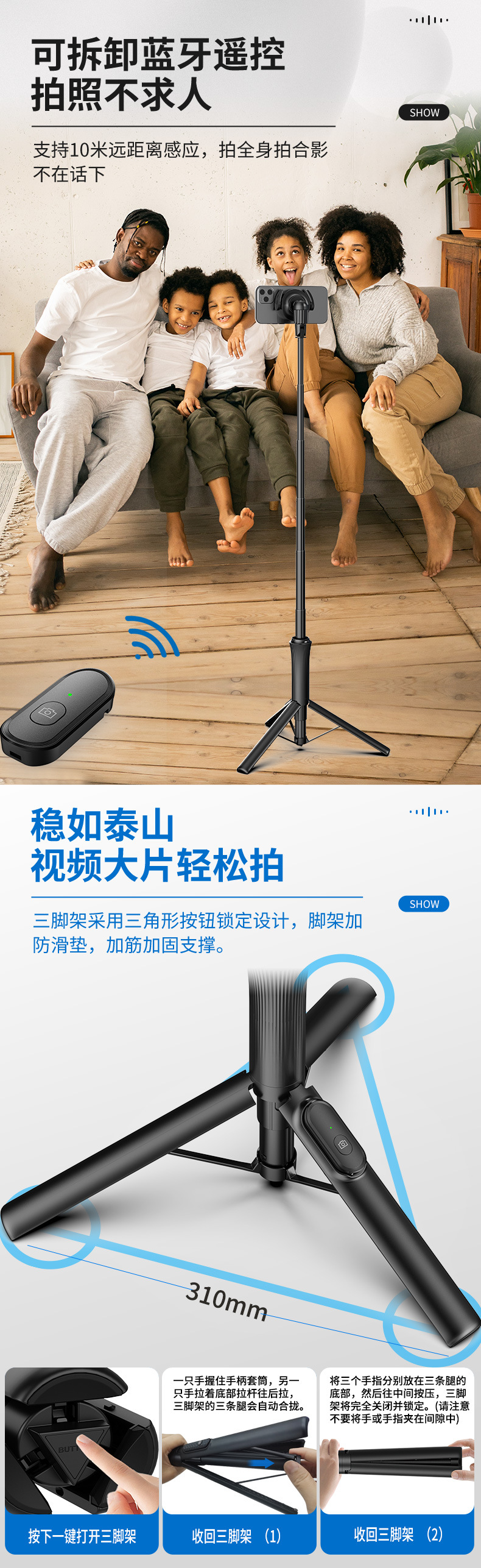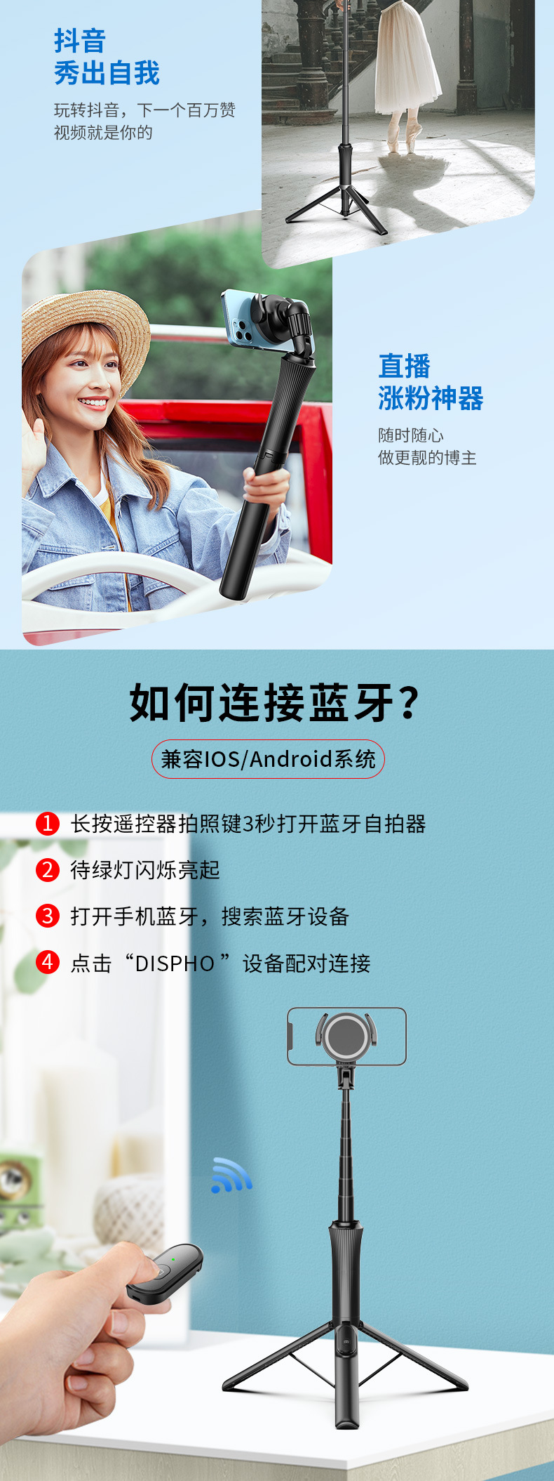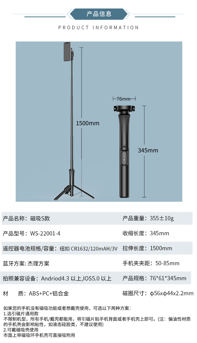 2024 새로운 블루투스 플로어 스탠딩 자기 흡입 셀카 스틱 휴대 전화 홀더 야외 후속 촬영 손떨림 방지 헤드스토어 가기