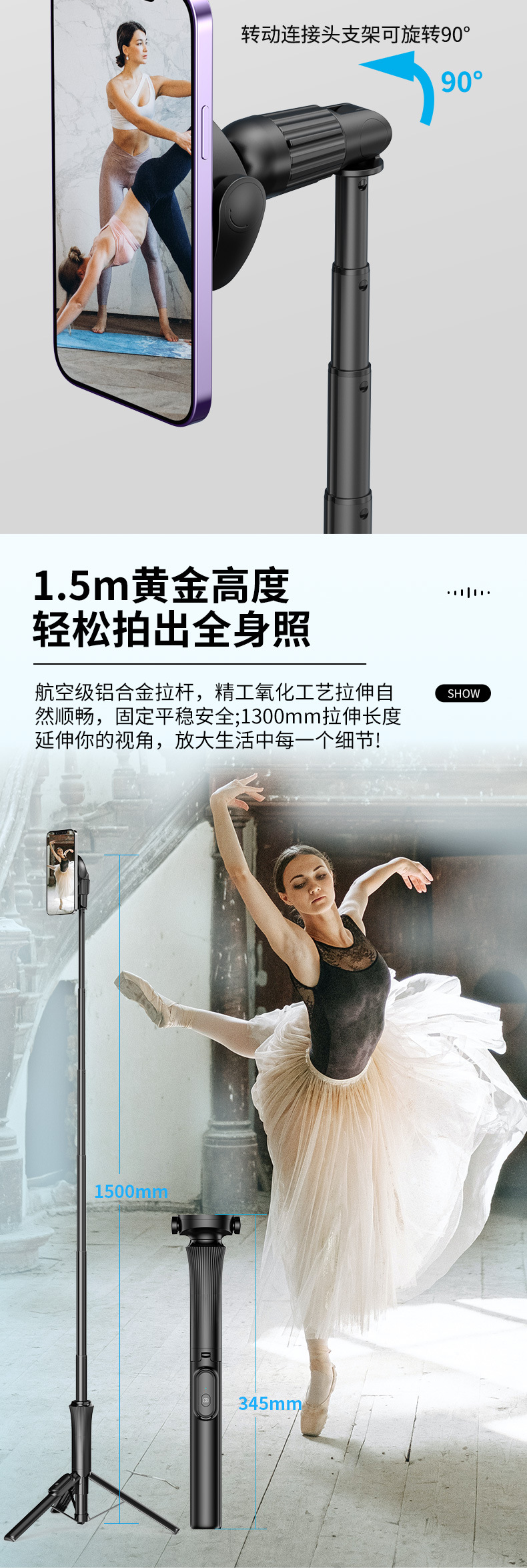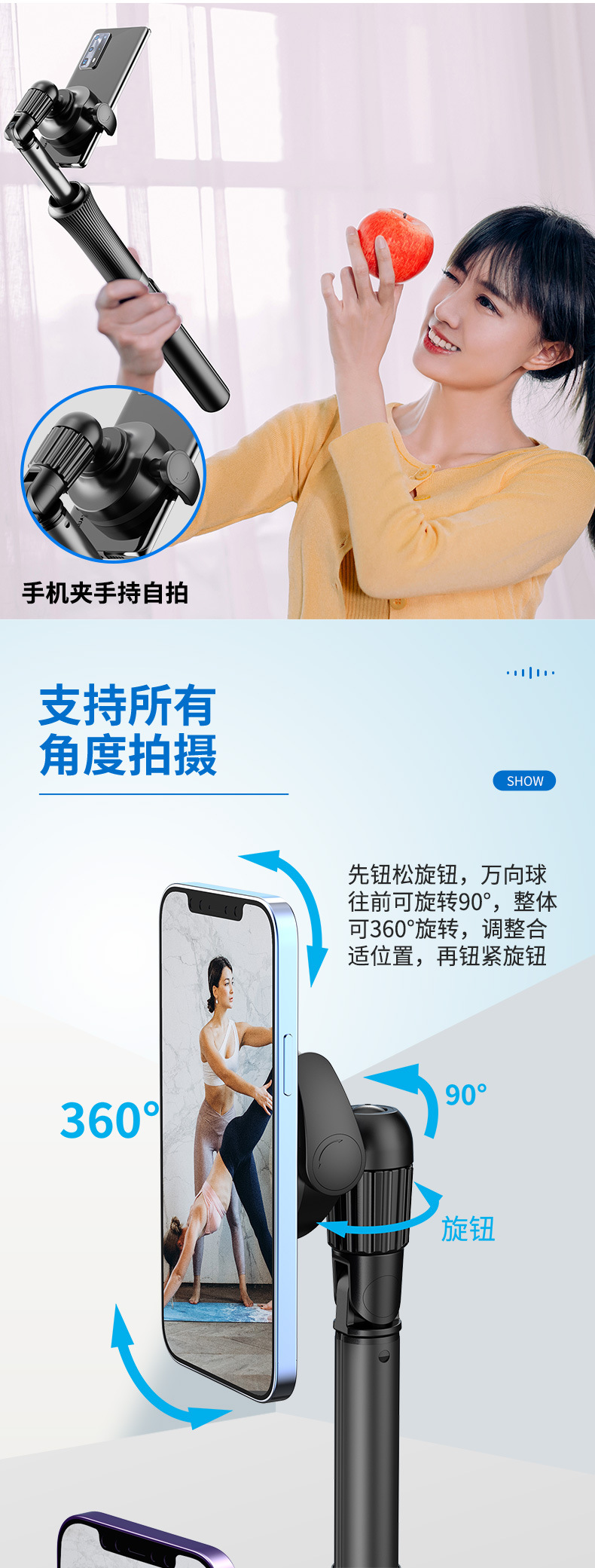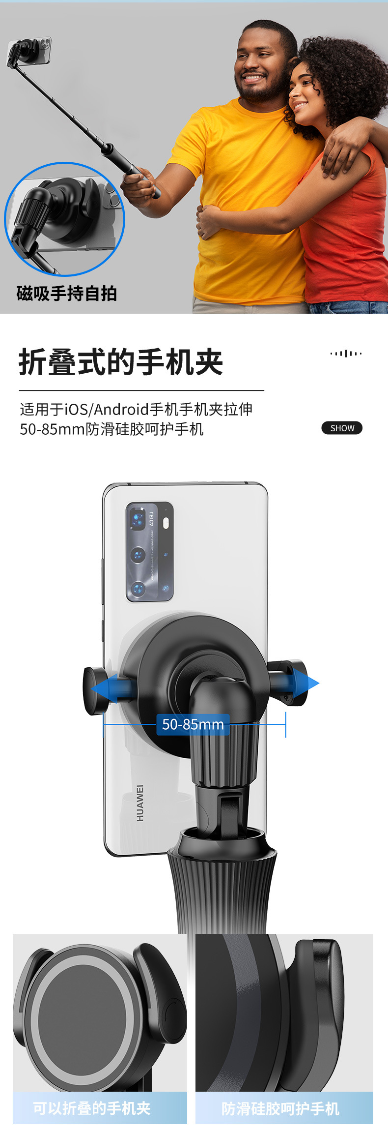 2024 새로운 블루투스 플로어 스탠딩 자기 흡입 셀카 스틱 휴대 전화 홀더 야외 후속 촬영 손떨림 방지 헤드