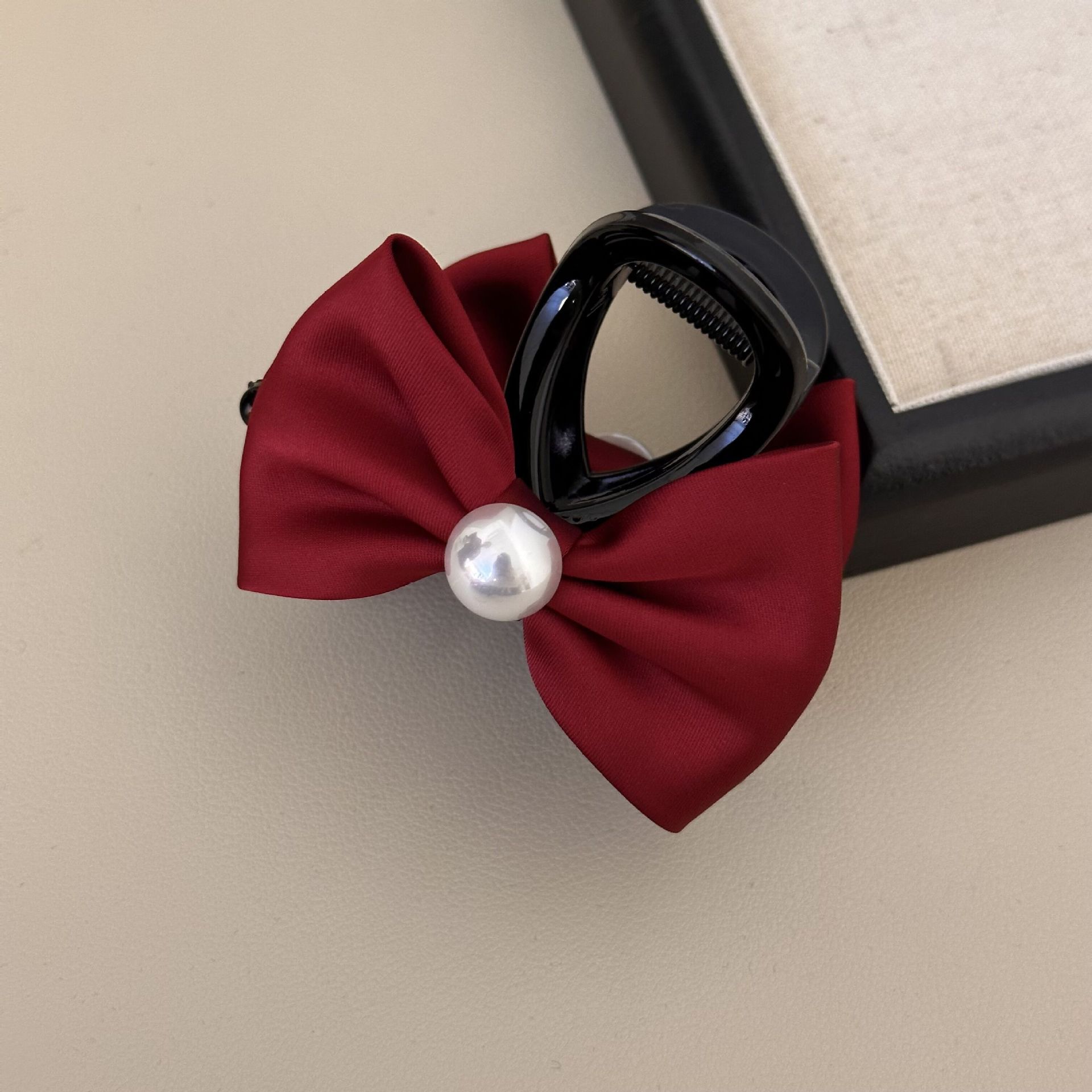 벨벳 활 ~ 벨벳 진주 절묘한 머리 그립 넥타이 머리 짧은 머리핀 머리 한국 상어 클립