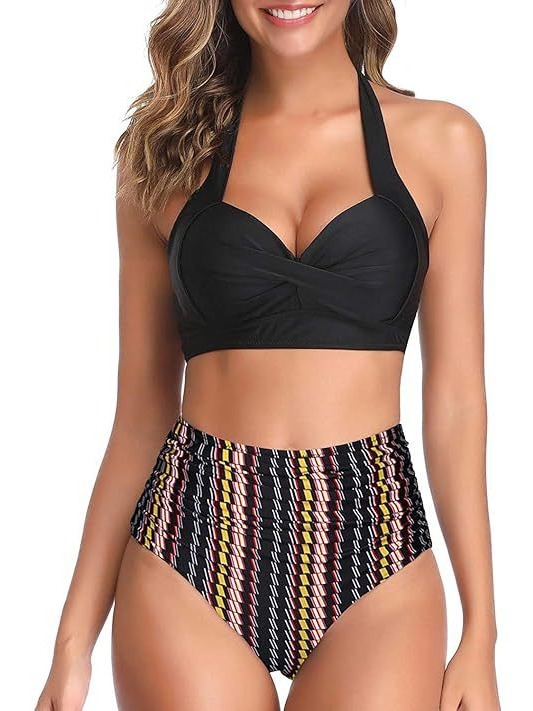 유럽과 미국의 국경 간 새로운 여성 분할 수영복 인쇄 강철 추적기, 등이없는 높은 허리 투컷 비키니 수영복 수집