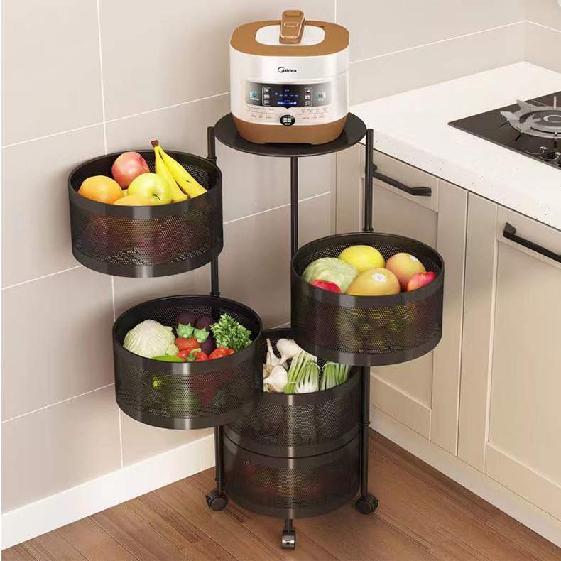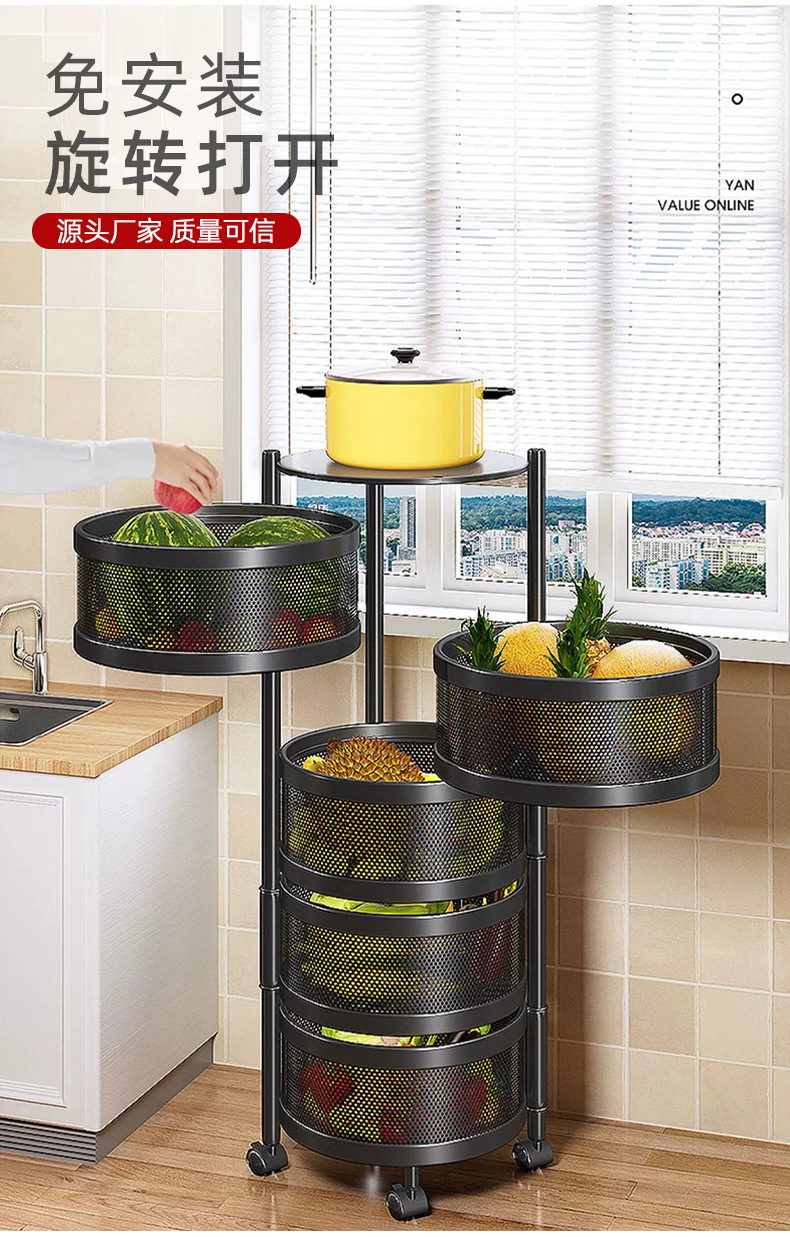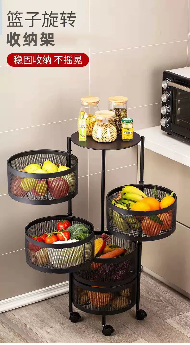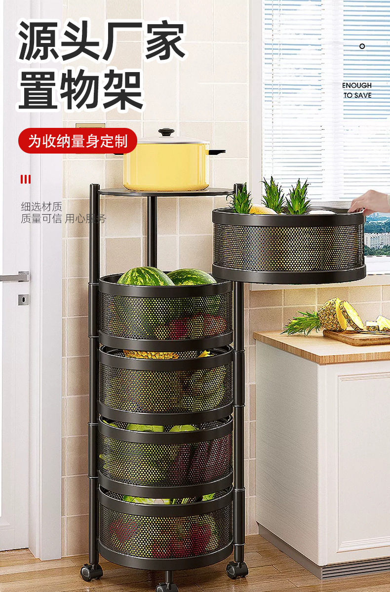 가정용 라운드 프레임 스토리지 랙 바닥 서 주방 과일 및 야채 스낵 스토리지 이동식 회전 트롤리 스토리지 랙