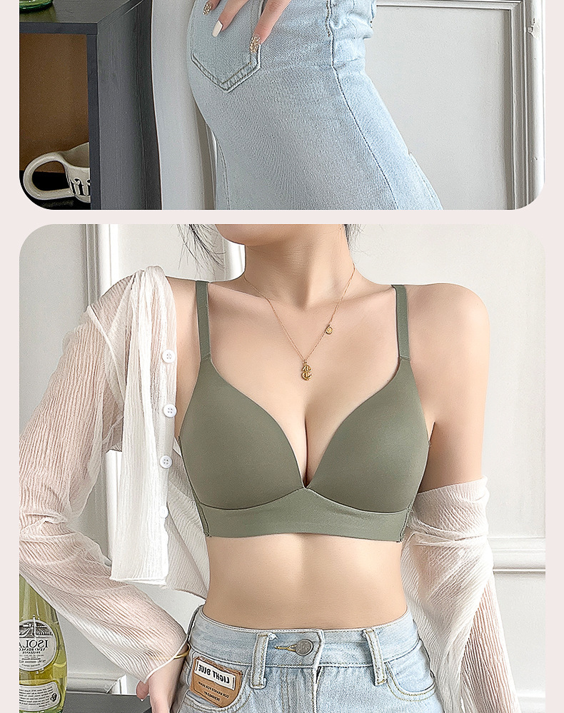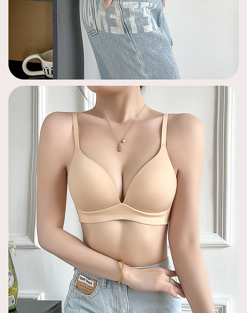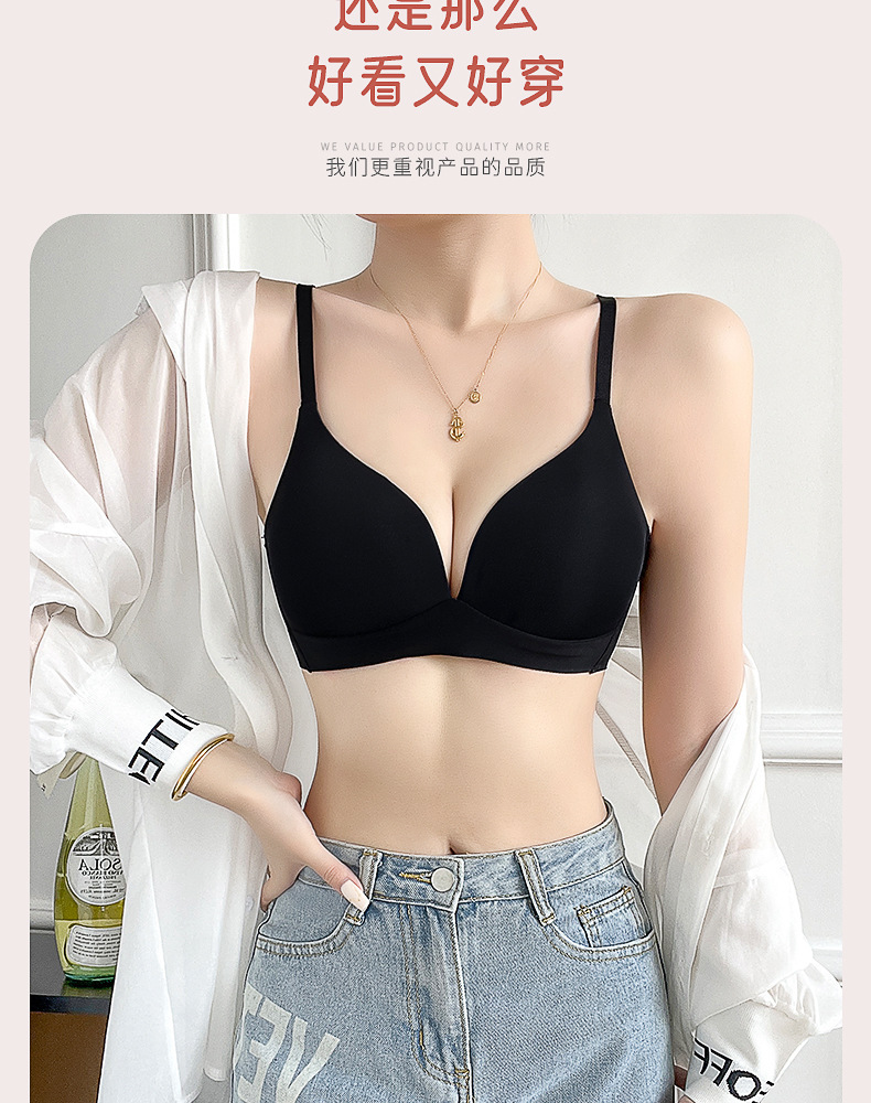 국경 간단한 소녀 무선 브래지어 단색 얇은 상단 얇은 바닥 두꺼운 밀어 속옷 학생 통기성 교수형 브래지어