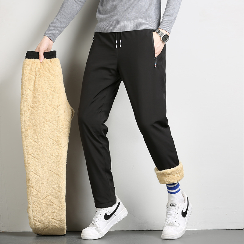 캐시미어 바지 남자 겨울 기모 두꺼운 스노우 팬츠 플러스 사이즈 발목에 묶인 바지 겉옷 방풍 따뜻한 면화 바지