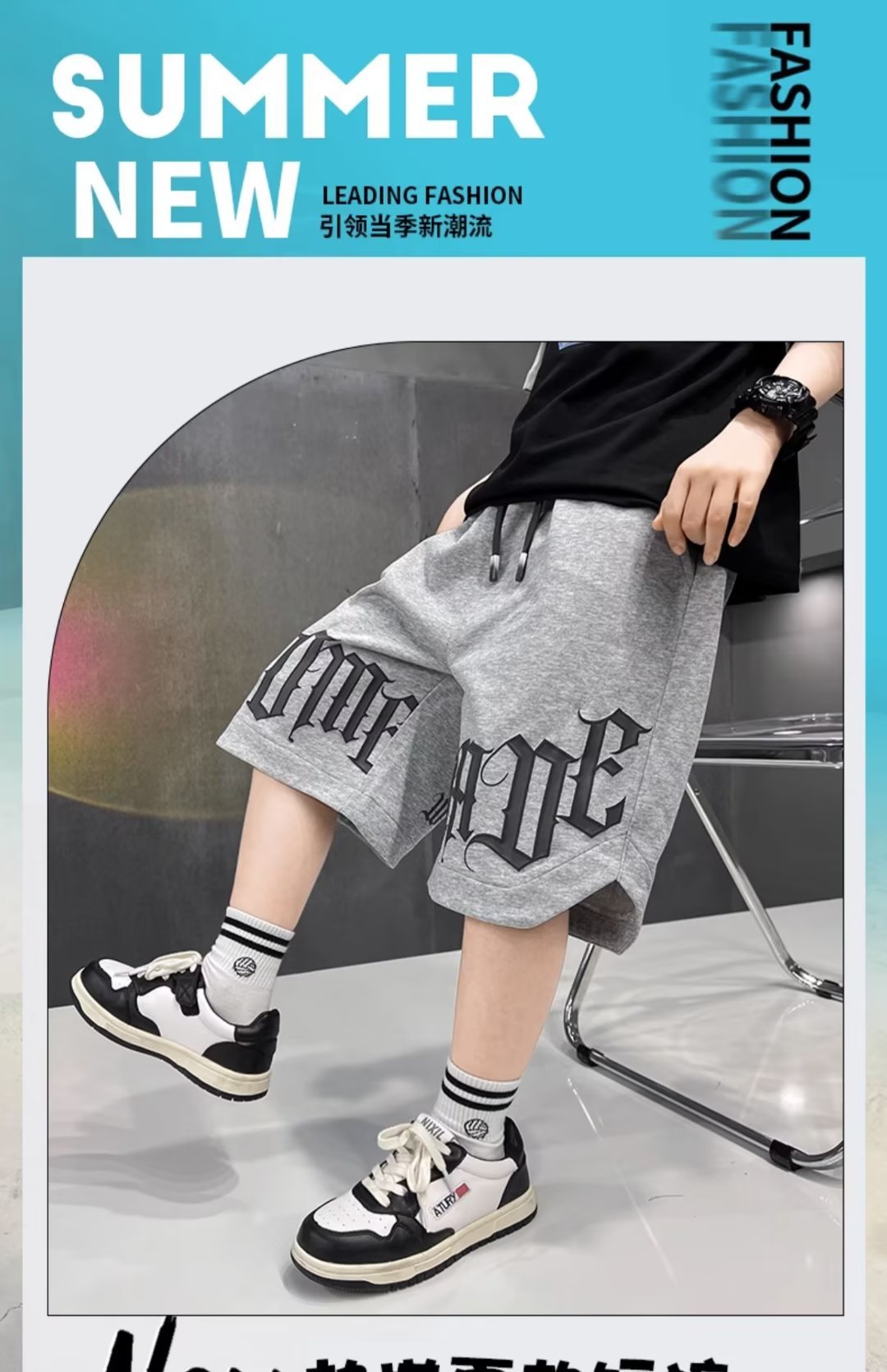 예술적 자른 바지 캐주얼 남성 느슨한 허리 새로운 인기 바지 여름 다용도, 간단한 어린이 스포츠 바지