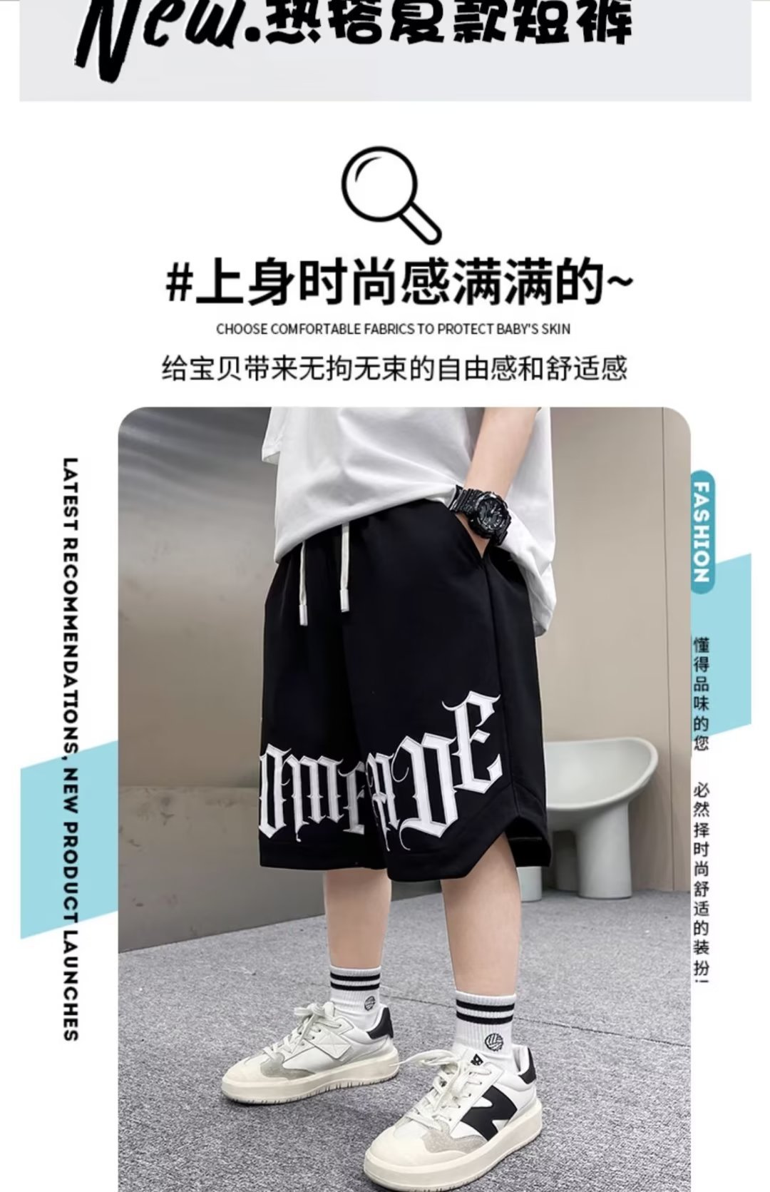 예술적 자른 바지 캐주얼 남성 느슨한 허리 새로운 인기 바지 여름 다용도, 간단한 어린이 스포츠 바지스토어 가기
