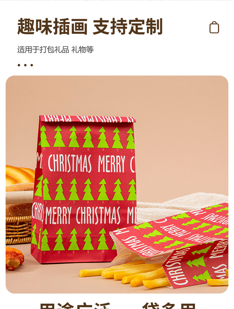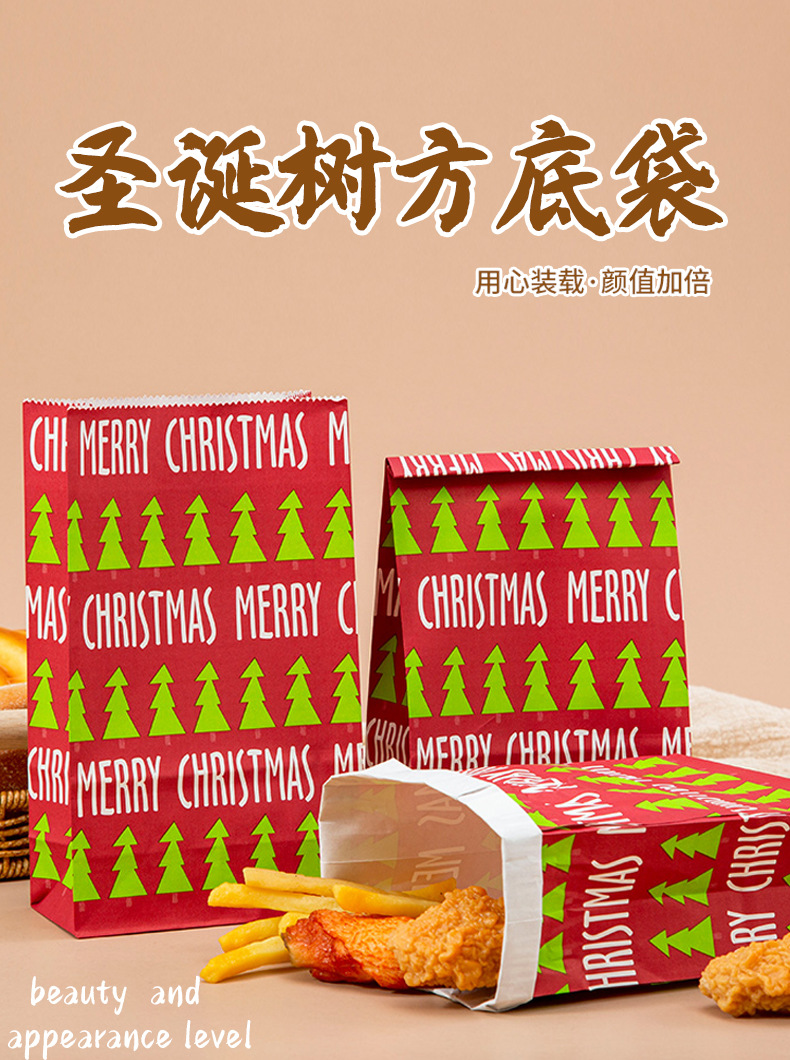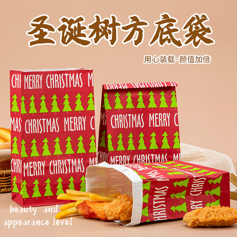 크리스마스 선물 종이 가방 크리스마스 트리 크래프트 종이 가방 선물 포장 손을 들고 포장 테이크 아웃 포장 가방 스낵 가방