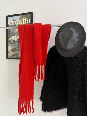 새해 빨간 호주 100% 울 스카프 작은 단색 니트 스카프 여성의 두꺼운 따뜻한 목 스카프스토어 가기