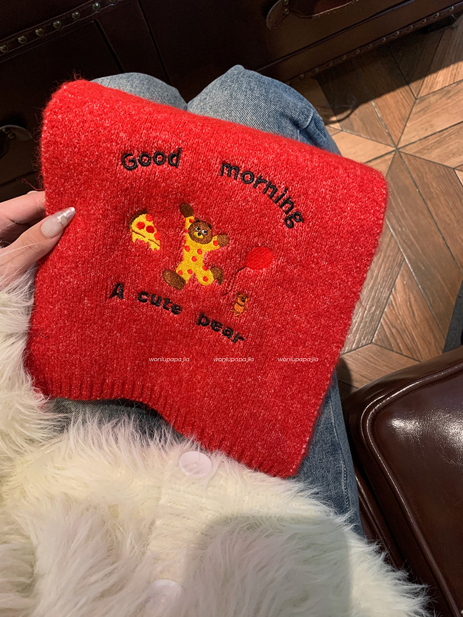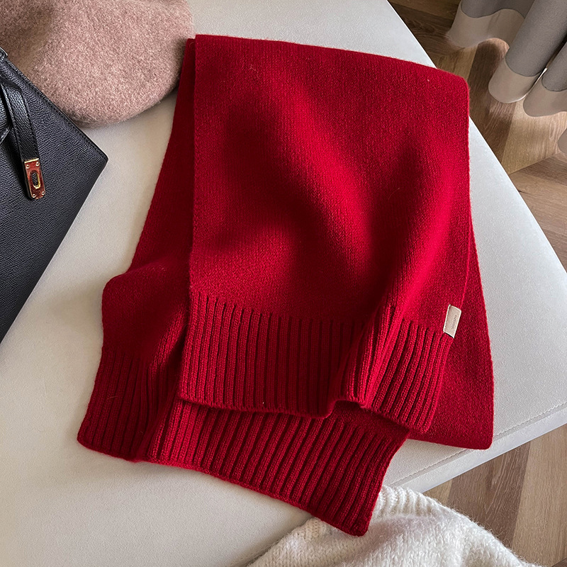 새해 빨간 호주 100% 울 스카프 작은 단색 니트 스카프 여성의 두꺼운 따뜻한 목 스카프