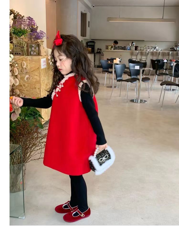 2024 아기 치파오 중국 스타일 두껍게 여아 원피스 생일 겨울 옷 새해 복 아기 새해 복스토어 가기