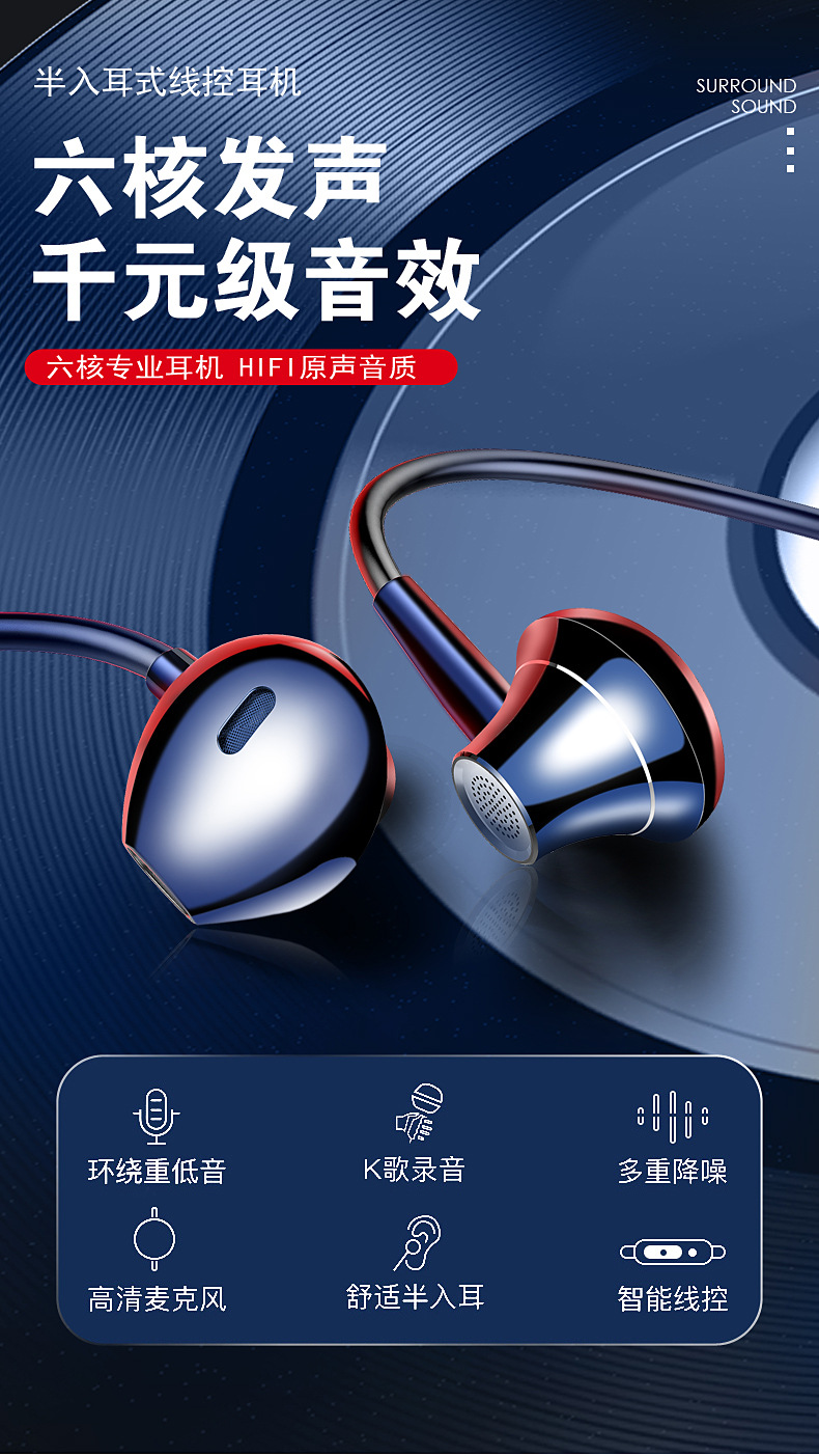 폭발 새로운 1.2 m 금속 헤드폰 세미 인 이어 스테레오 휴대 전화 범용 소음 감소 노래방스토어 가기