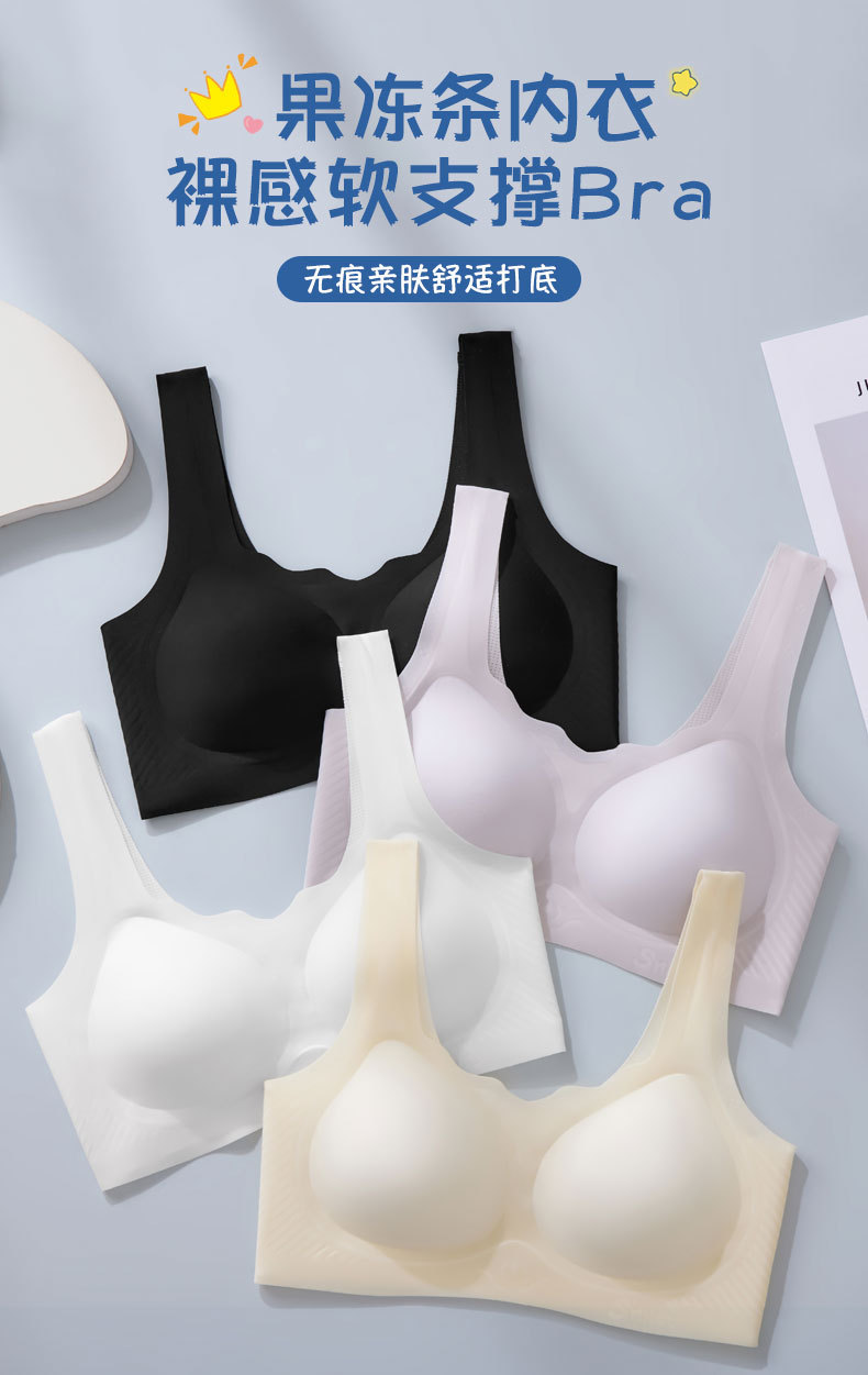 젤리 스트립 속옷 아이스 실크 원활한 소프트 지원 상단 지원 소녀 브라 반 고정 컵 스틸 링없이 스포츠 뷰티 백스토어 가기