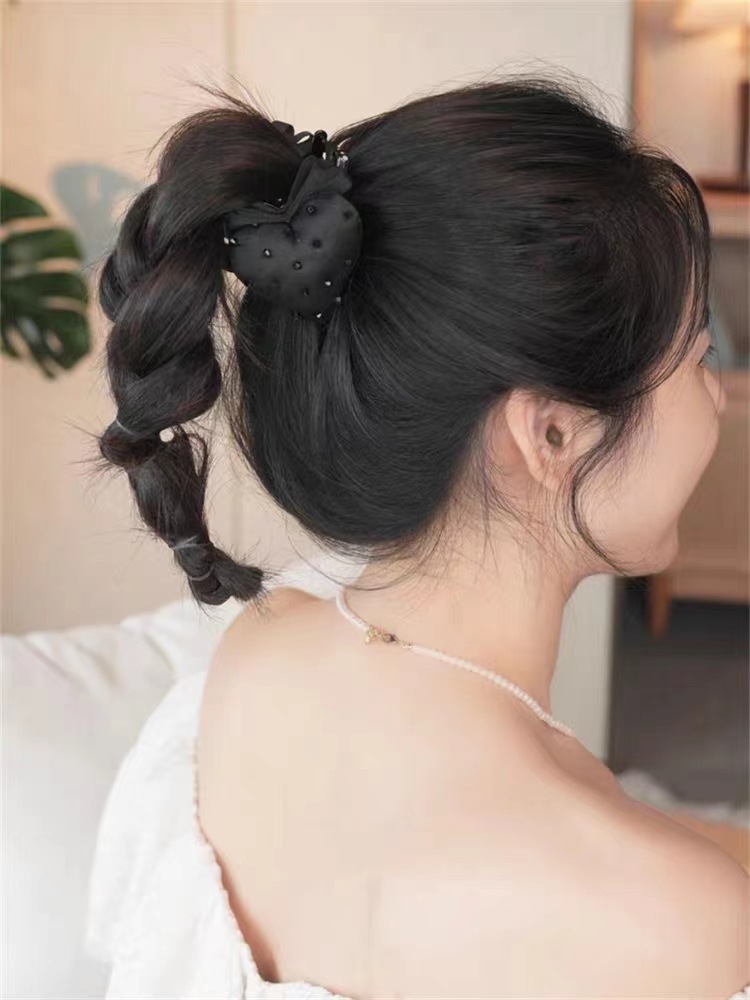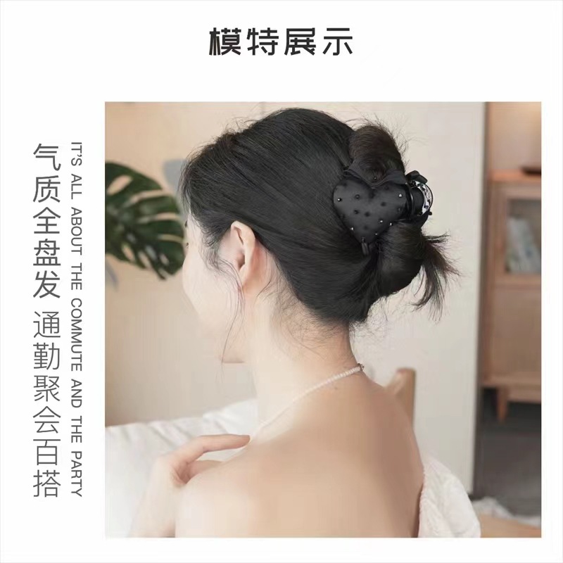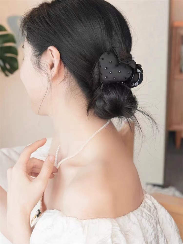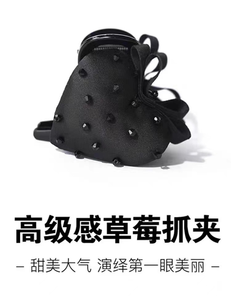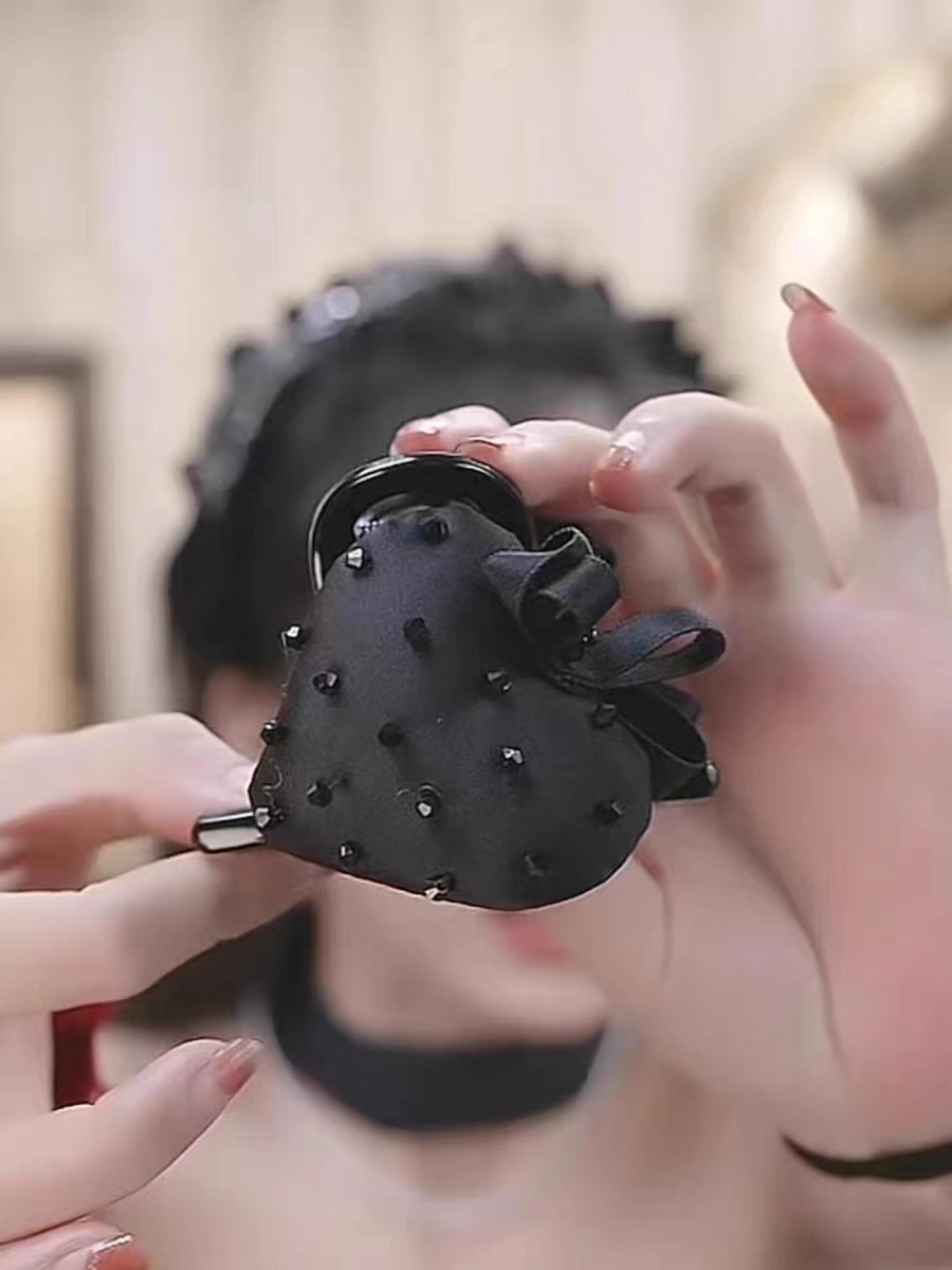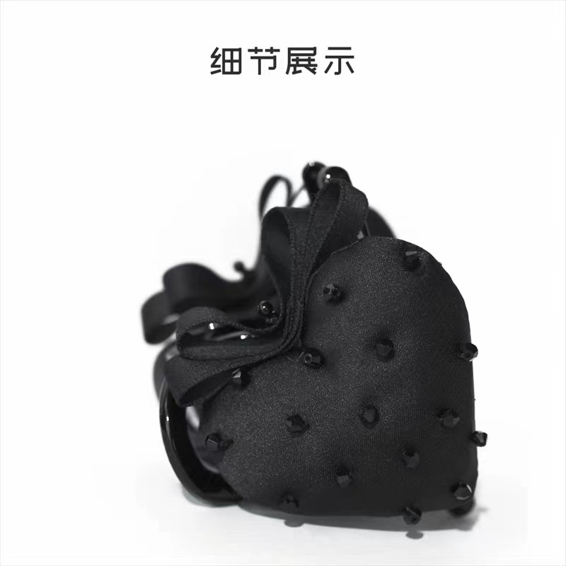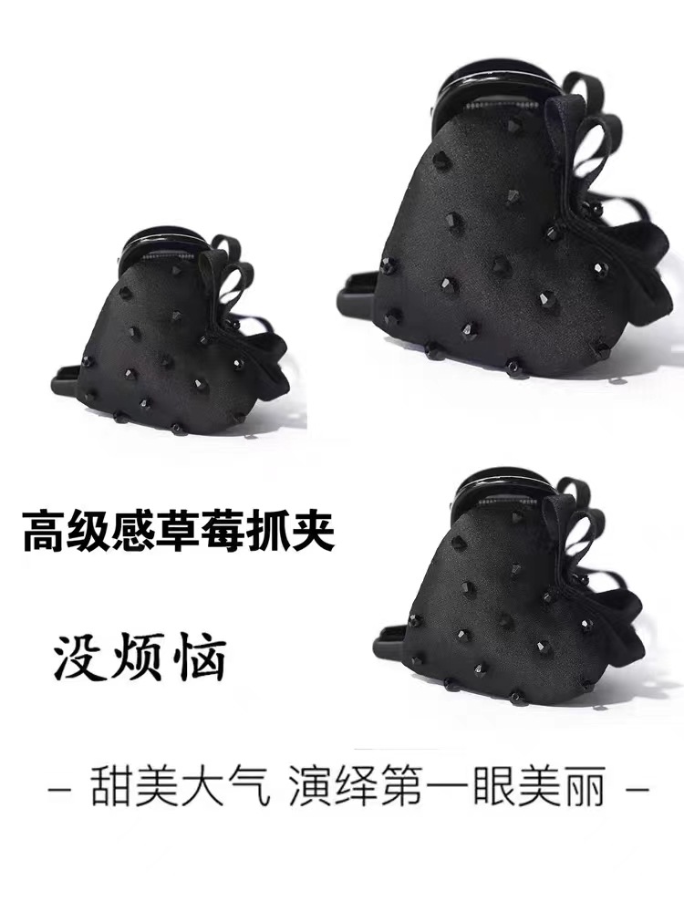 [걱정 없음] 한국식 블랙 고급 크리스탈 딸기 클립 달콤한 복숭아 하트 머리핀 우아한 클립