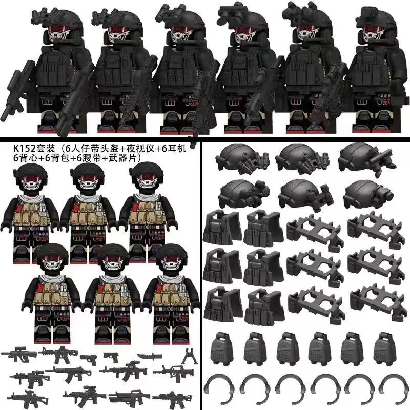 레고 군사 블록과 호환되는 해외 수출용 고스트 위장 특수부대 피규어, 특수경찰팀 무기 및 장비