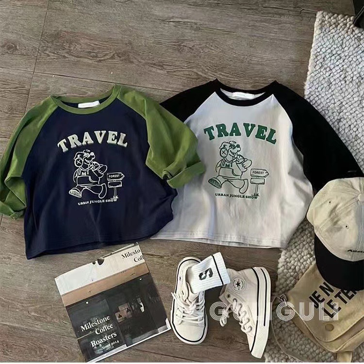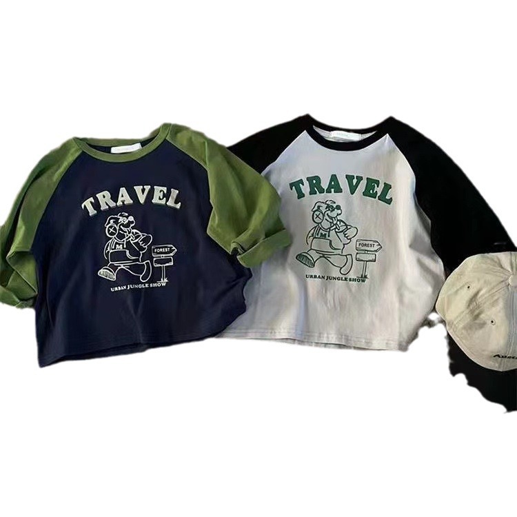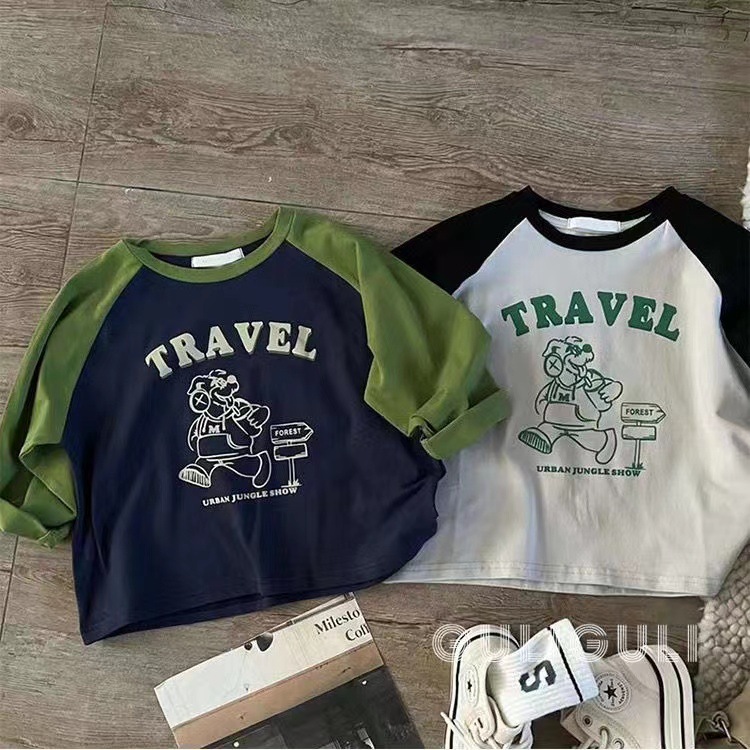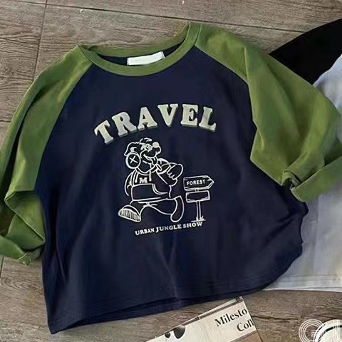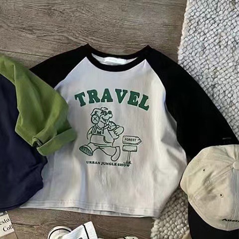 아동용 긴팔 면 티셔츠 바닥 셔츠 2024 새로운 스타일 긴팔 탑 소년 소녀용, 유아용 루즈, 중소형 아동용스토어 가기