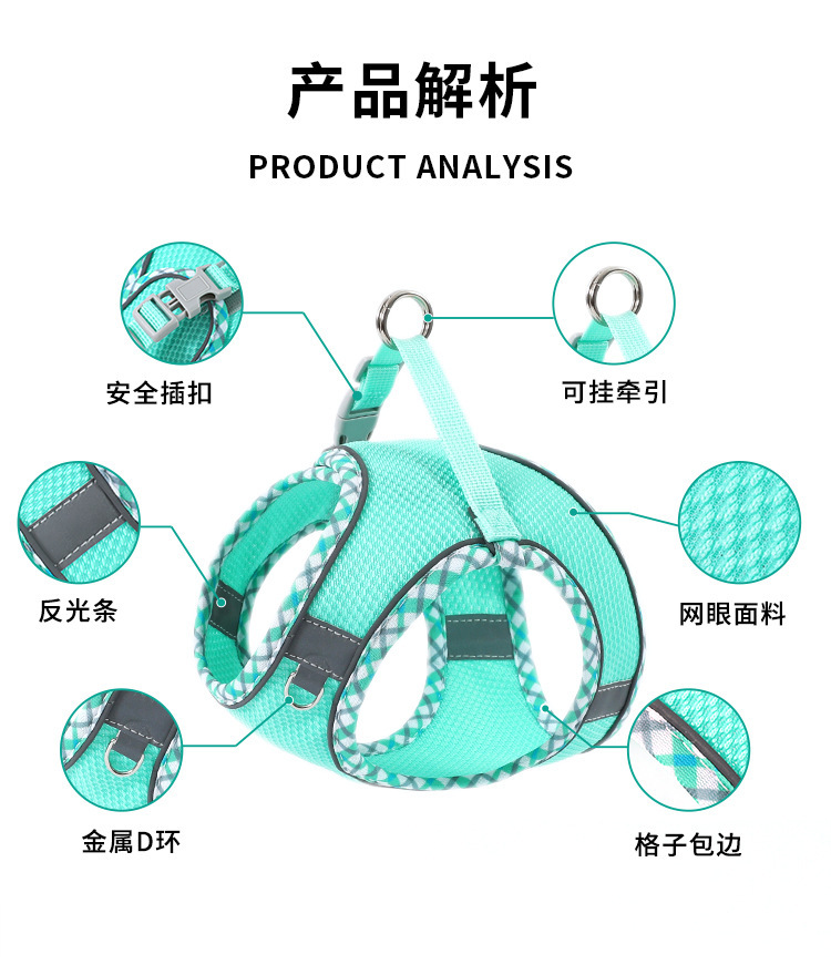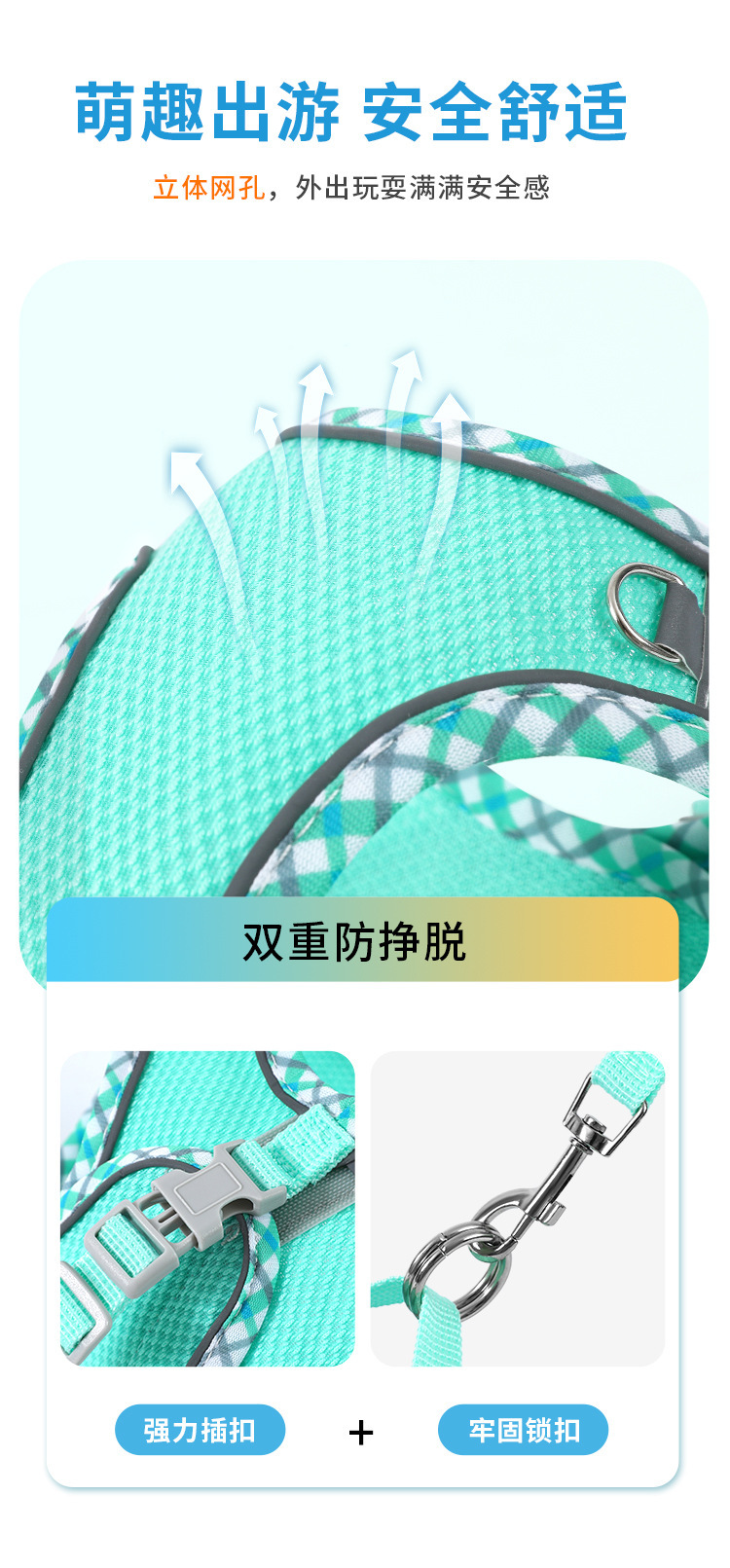 고양이 가죽 끈 조끼 스타일 작은 개 걷는 개 고양이가 가슴 끈 안티 브레이크 테디 베어를 끈다