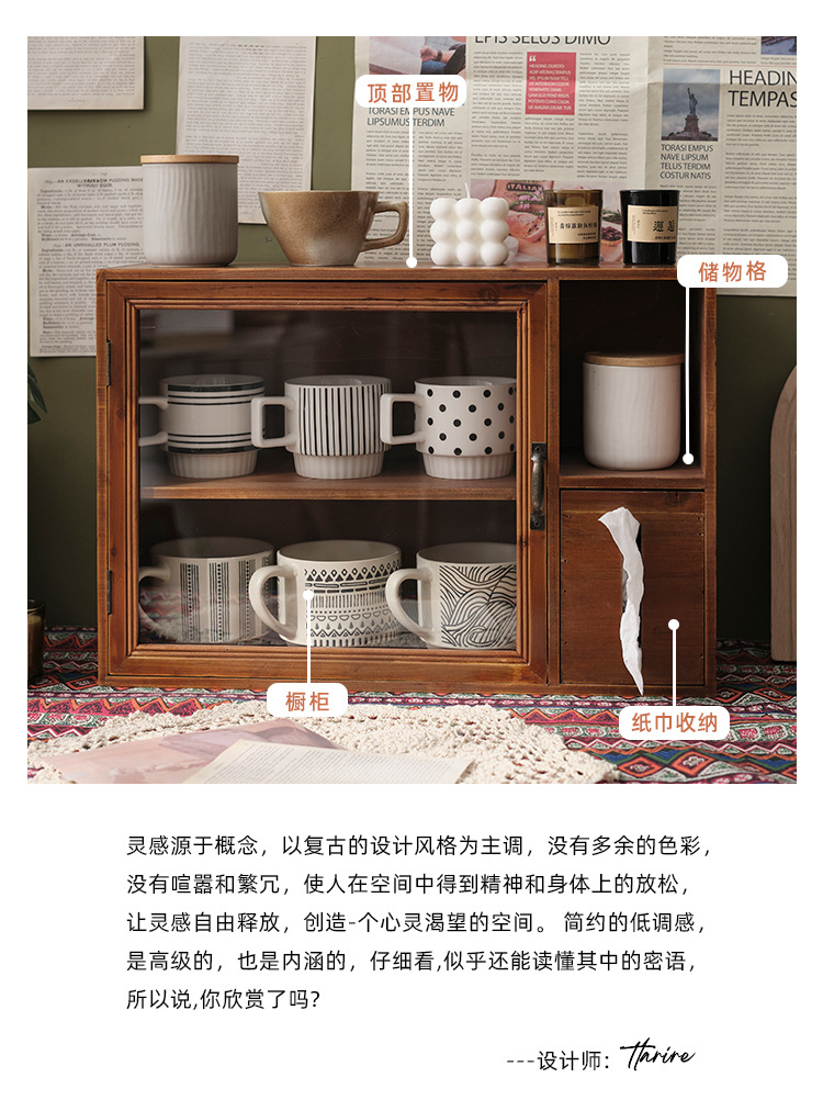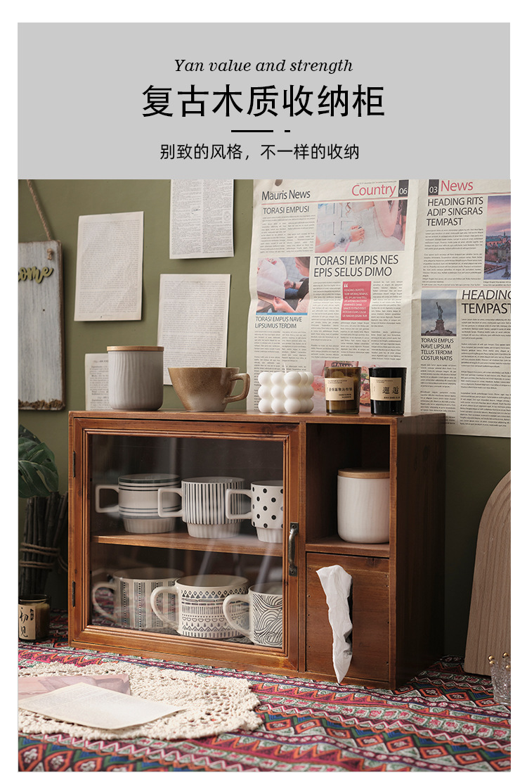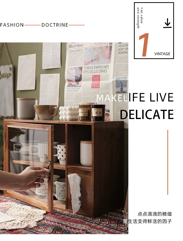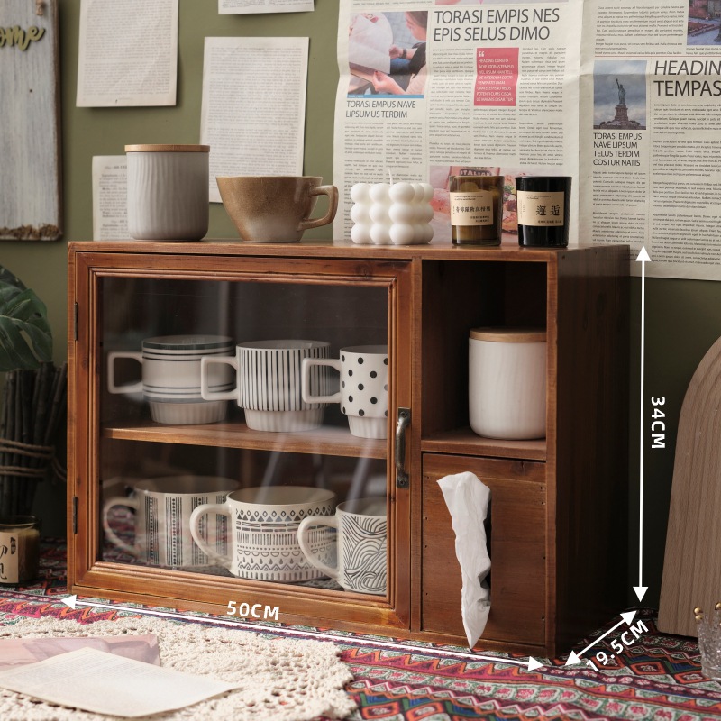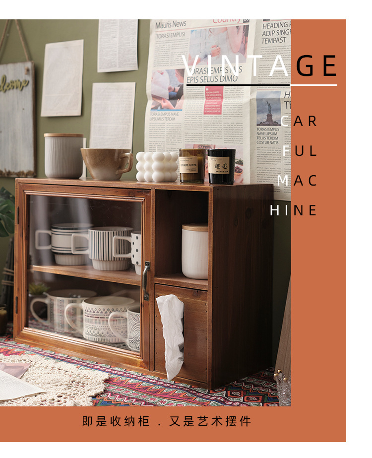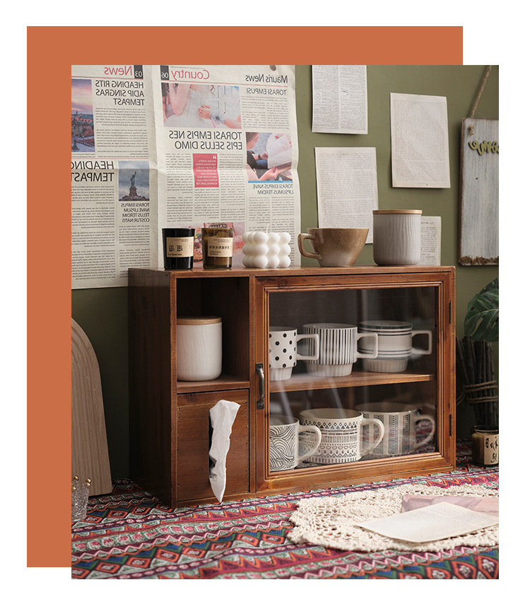 Zakka 인터넷 유명 스토리지 랙 티슈 박스 빈티지 더블 레이어 나무 차 세트 데스크탑 스토리지 박스 컵 방진 캐비닛스토어 가기