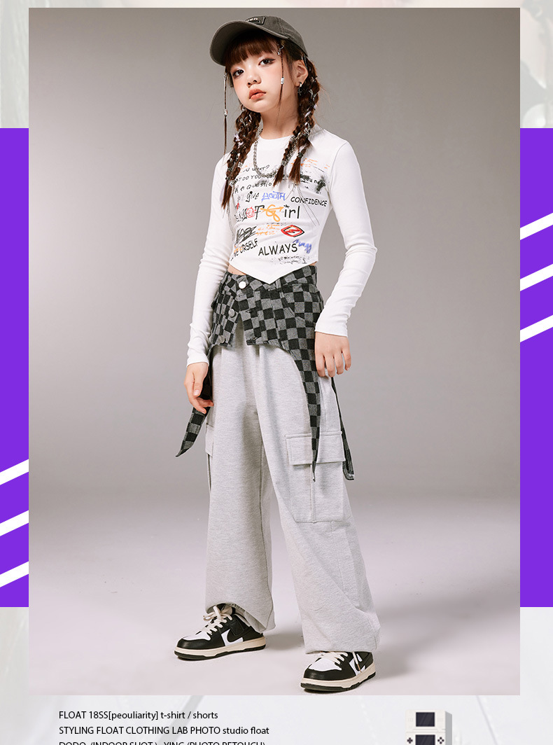 여아 재즈 댄스 공연 의상, 여아 힙합 재즈 슈트, 여아 패션 배꼽 노출 의상, 아동 스트리트 댄스 트렌디 의류