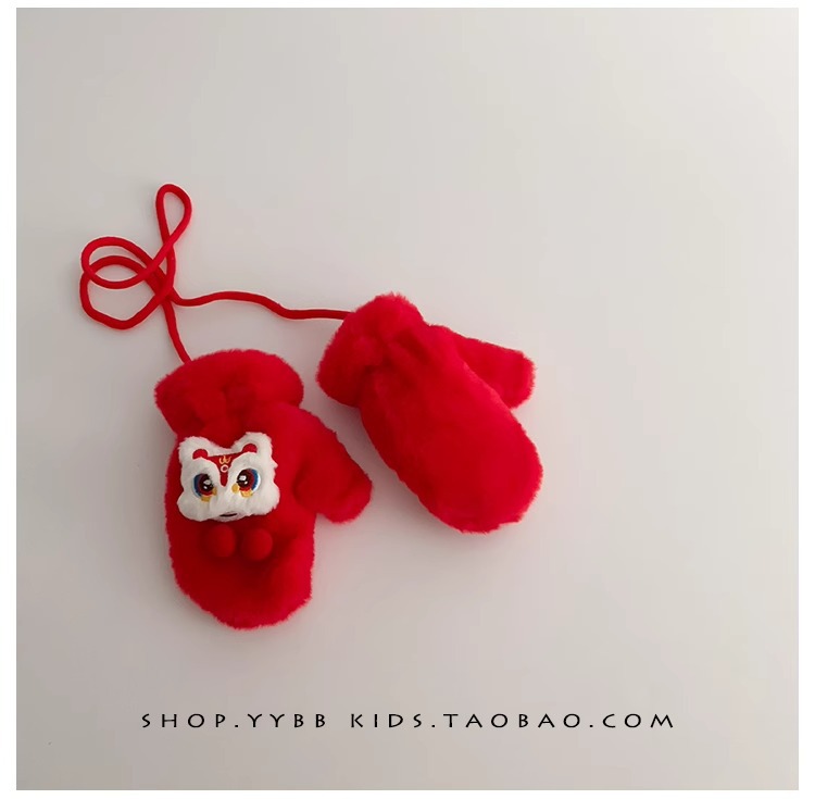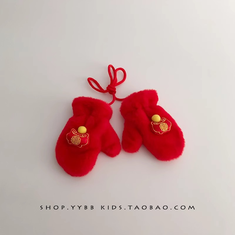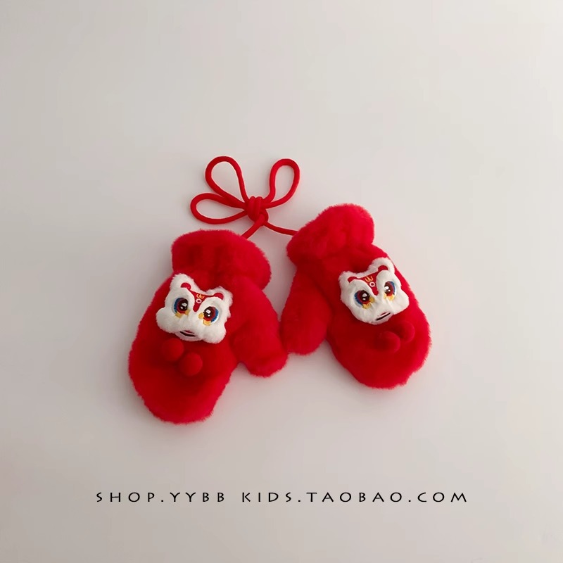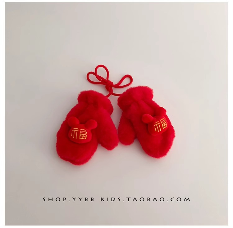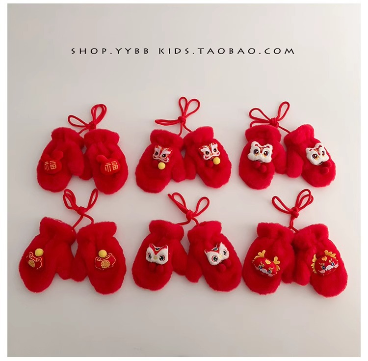 빨간 어린이 장갑 겨울 소년 소녀 아기 Xingshi 새해 축제 따뜻한 기모 어린이 손가락 장갑스토어 가기