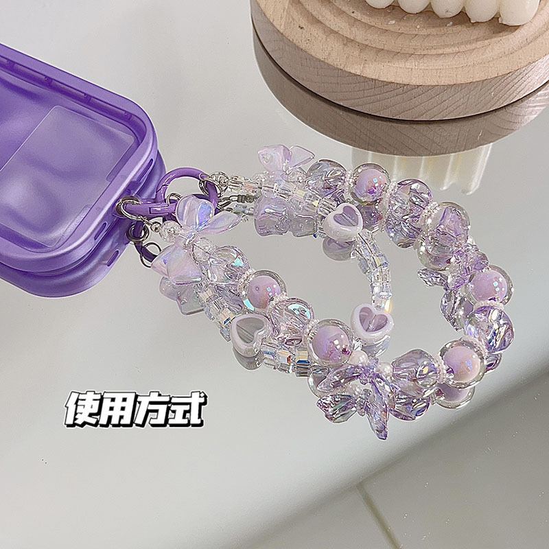 인터넷 연예인, 보라색 활 크리스탈 체인 손목 범용 전화 케이스 ccd 카메라 여성용 휴대폰 끈스토어 가기