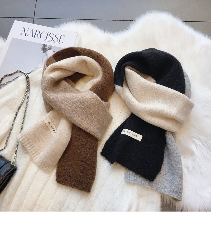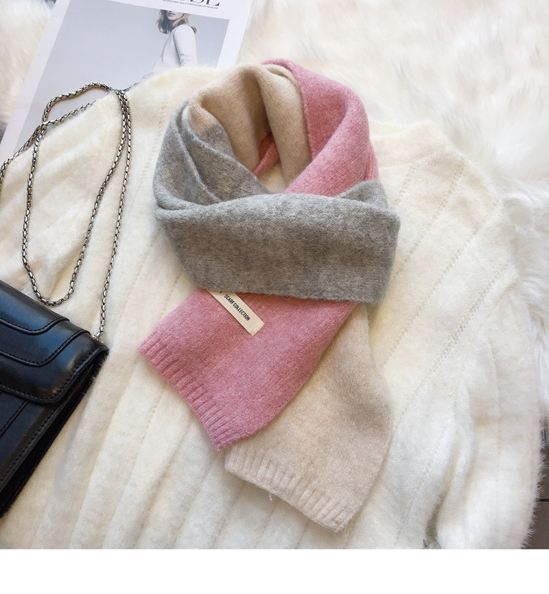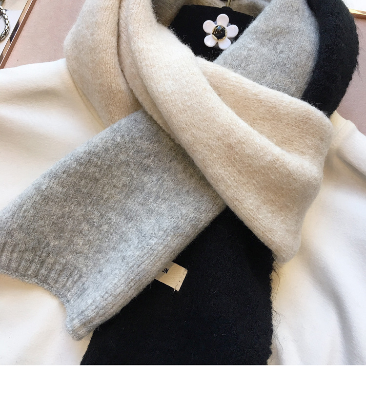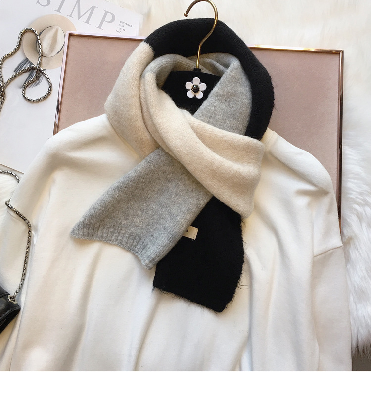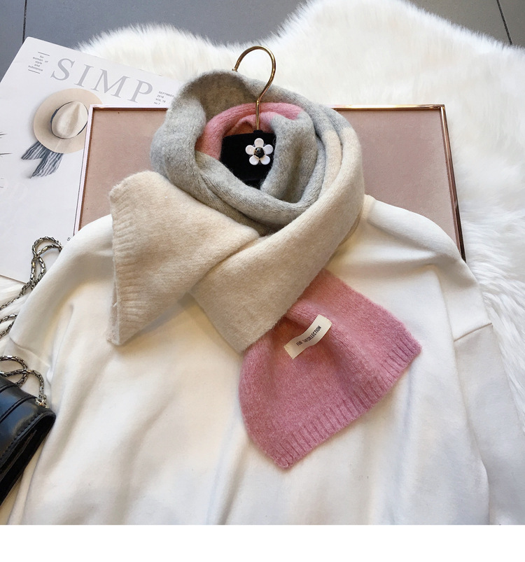 敲温柔~拼色毛线小围巾百搭女韩国窄版保暖围脖学生男女亲子秋冬