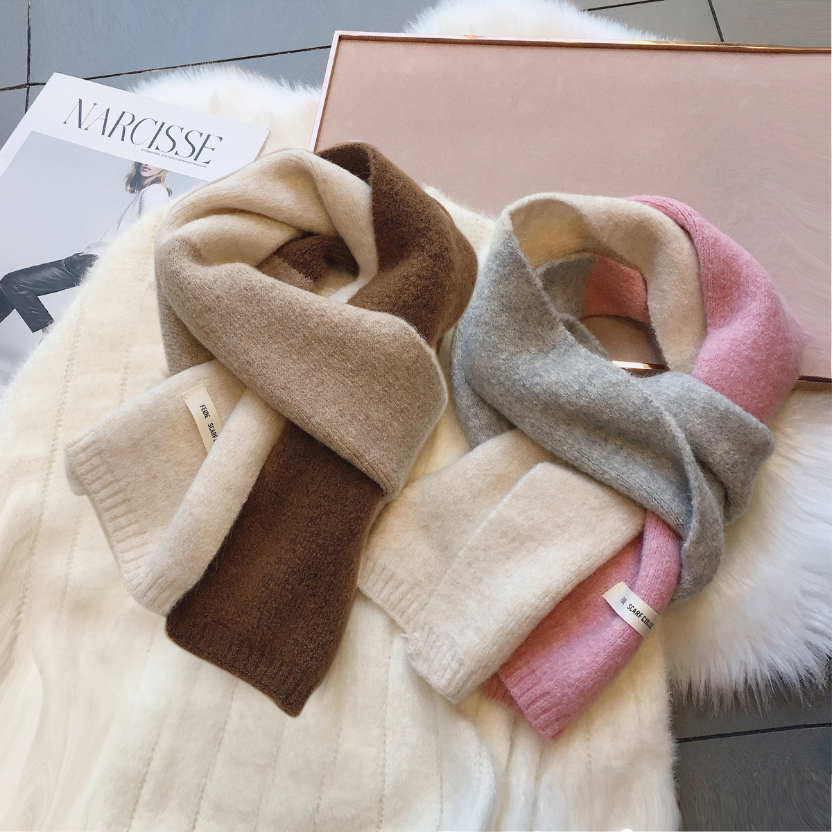 노크 젠틀 ~ 컬러 매칭 울 스카프 조커 여성 한국 좁은 따뜻한 목 학생 남녀 부모-가을 겨울스토어 가기