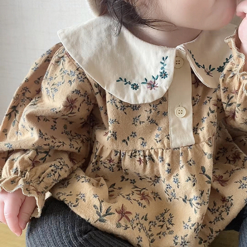 아기 가을 옷 긴 소매 꽃 칼집 아기 서양식 인형 칼라 롬퍼 가을 달콤한 나들이 장난 꾸러기