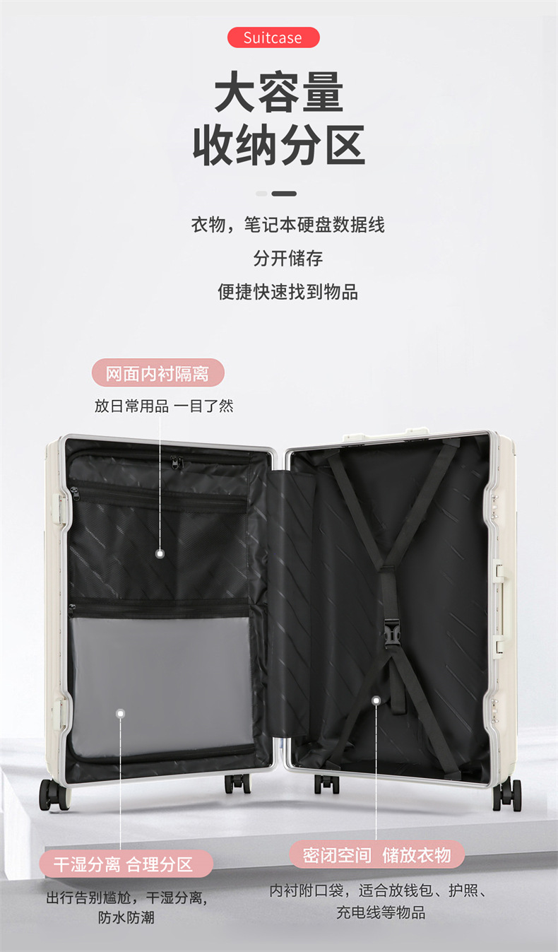 다기능 24 인치 수하물 케이스 조합 잠금 건조하고 젖은 분리 야외 가방 학생 유니버설 휠 알루미늄 프레임 트롤리 케이스스토어 가기