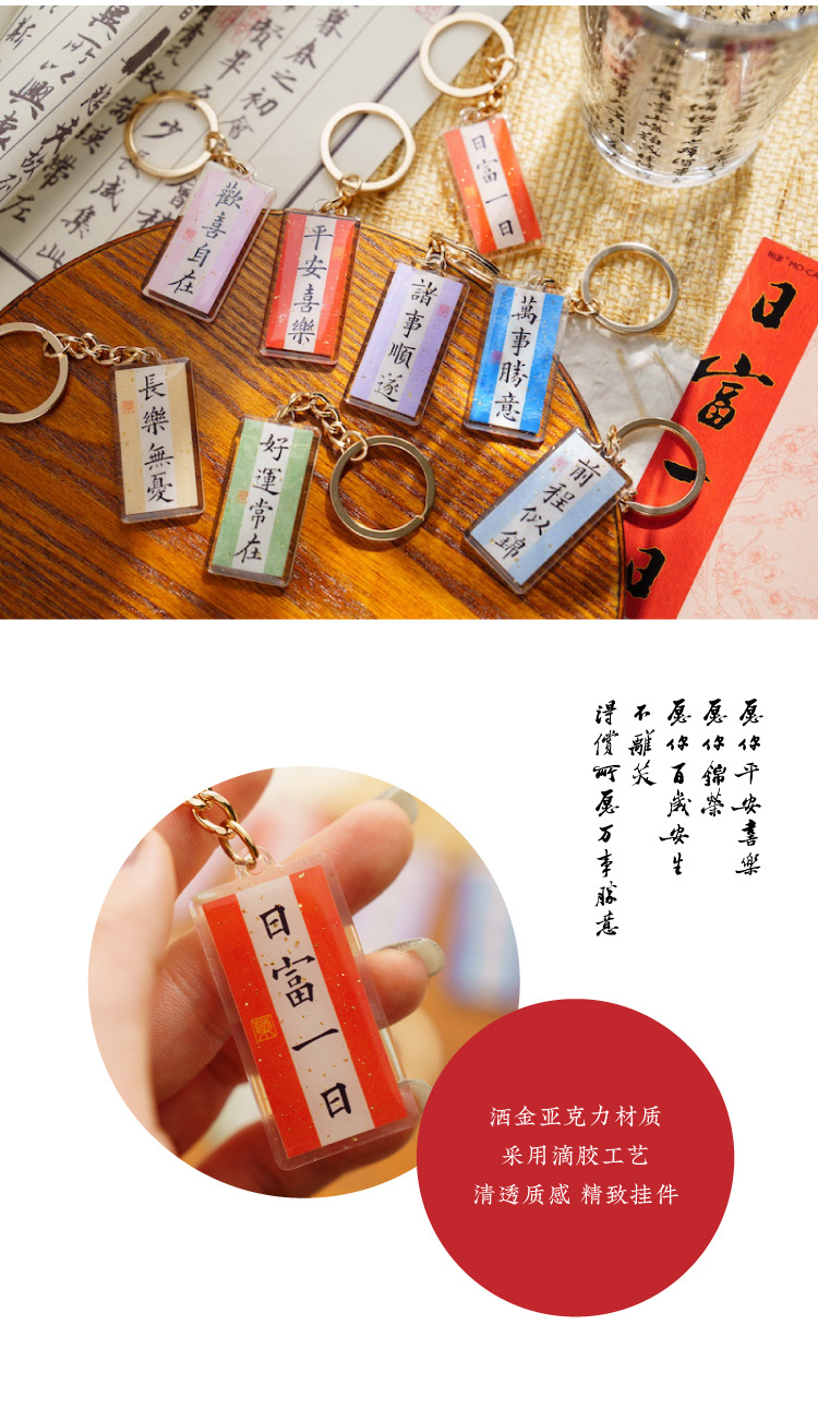 Mo Mo Mo 아크릴 조합 펜던트 모든 생각은 소원 시리즈와 같습니다 국가 스타일 골드 뿌리기 에폭시 학교 가방 장식 키 체인스토어 가기
