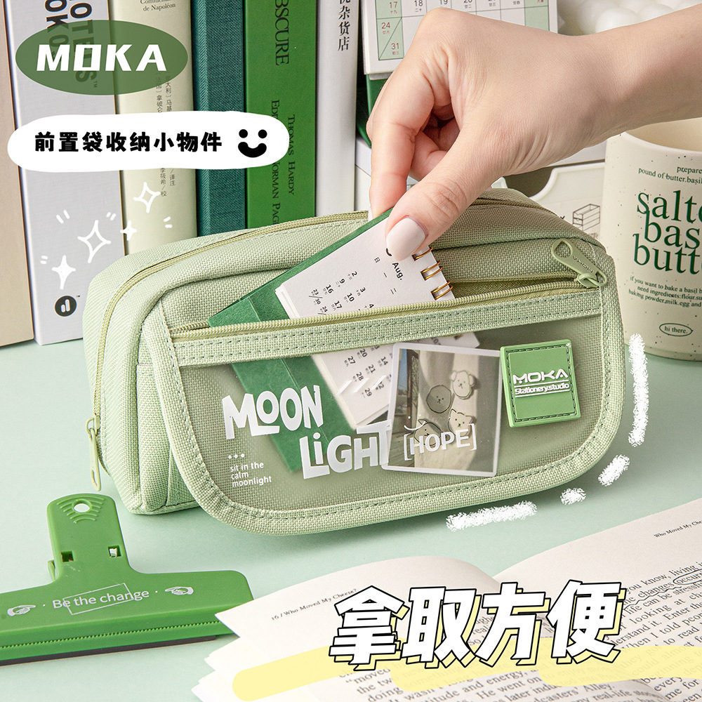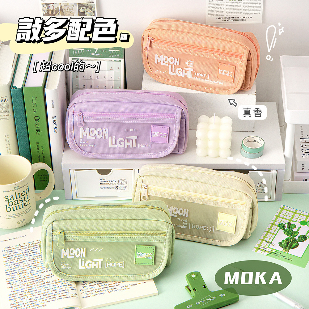 중학생을위한 새로운 달빛 연필 케이스 대용량 연필 케이스 고등학교 소녀 높은 모양의 간단한 연필 케이스