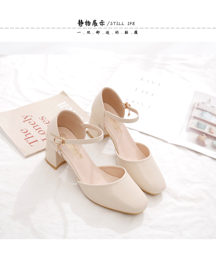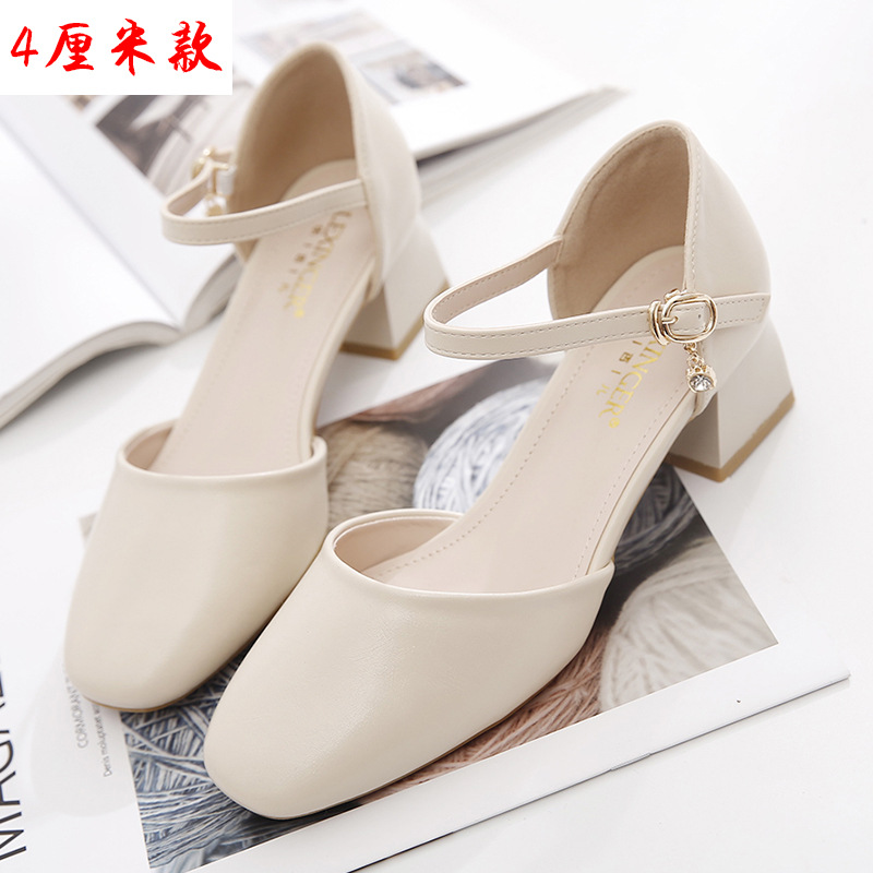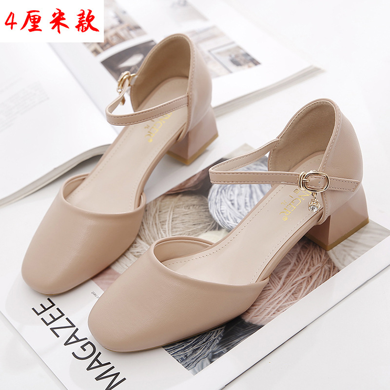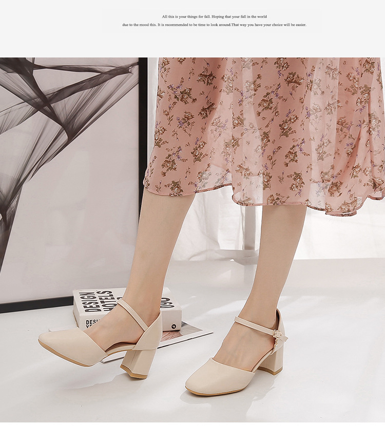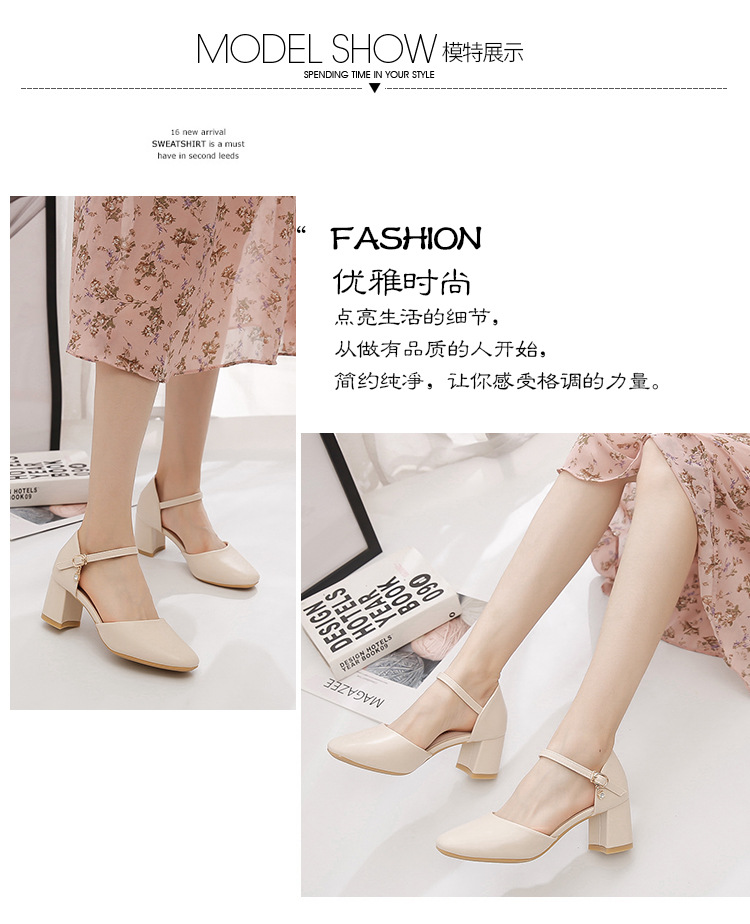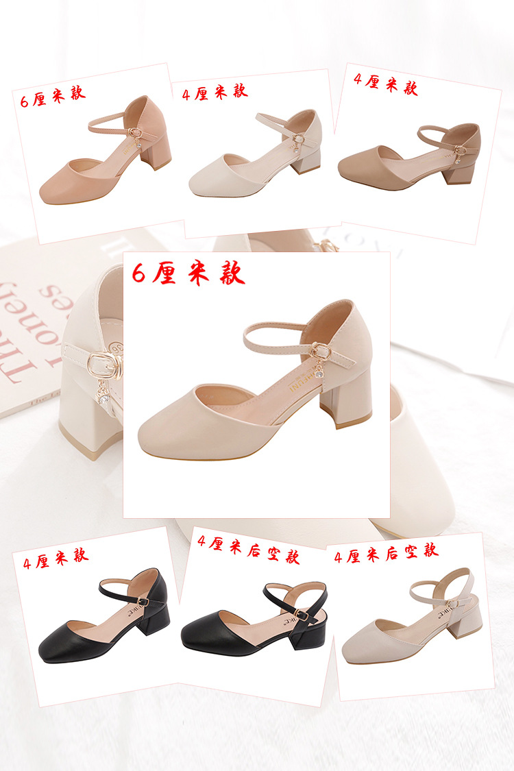 소스 공장 직접 공급 정품 가죽 여성용 하이힐 슈즈 미드 힐 스프링 및 여름 청키 힐 스퀘어 토우 중공 샌들, 버클 로우 힐 슈즈스토어 가기