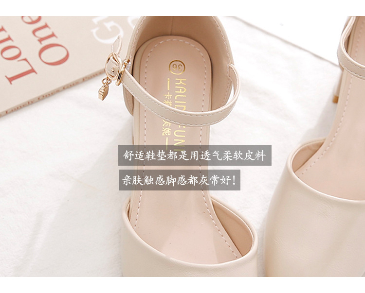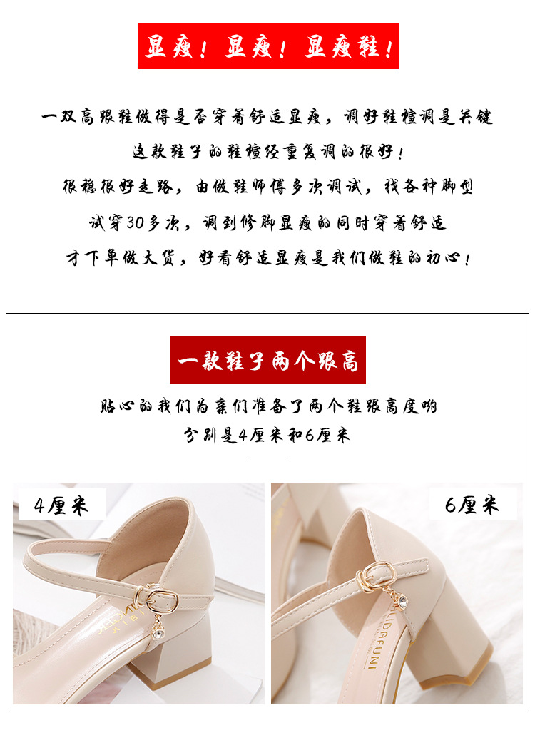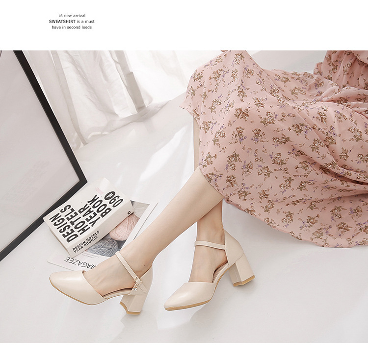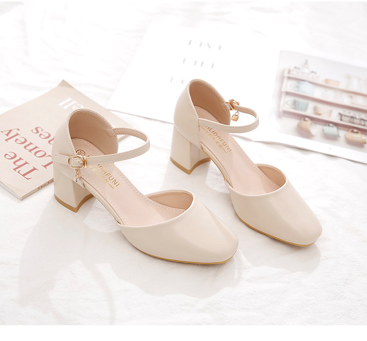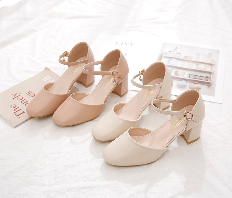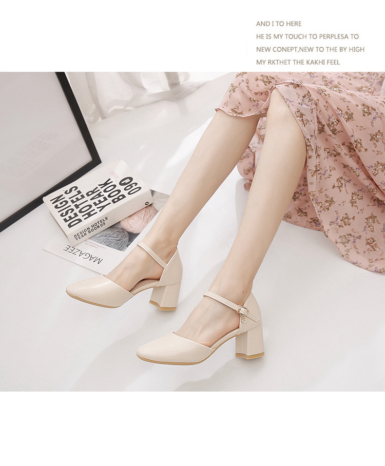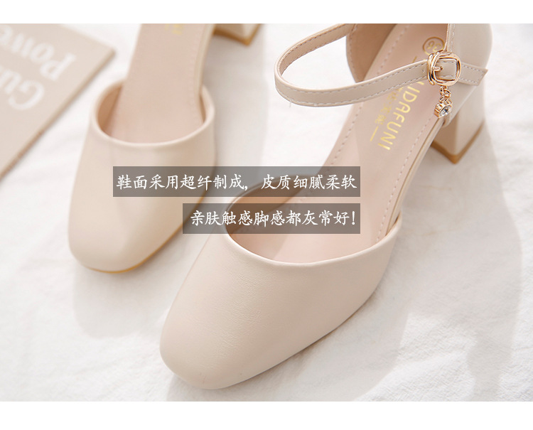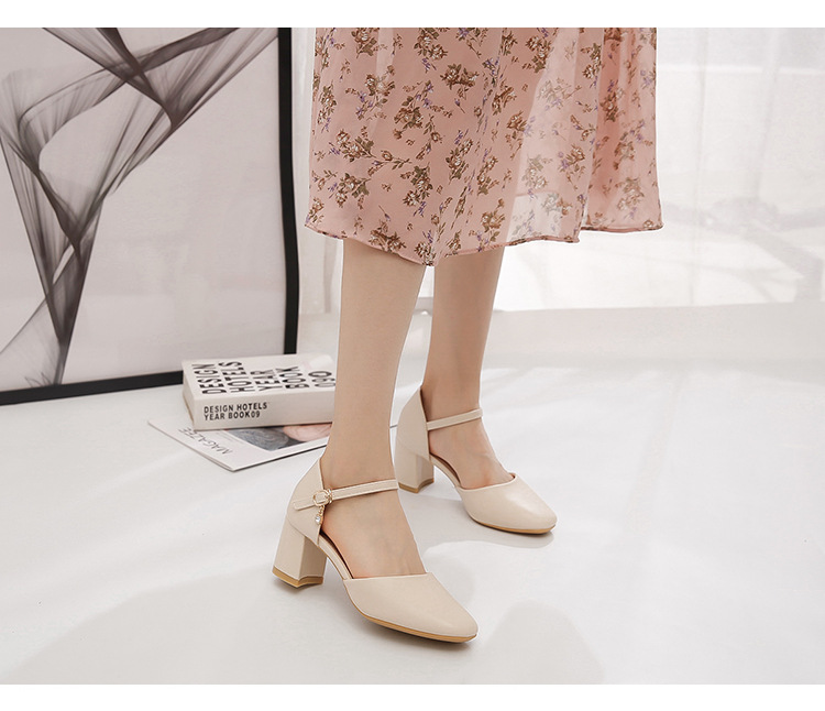 소스 공장 직접 공급 정품 가죽 여성용 하이힐 슈즈 미드 힐 스프링 및 여름 청키 힐 스퀘어 토우 중공 샌들, 버클 로우 힐 슈즈스토어 가기