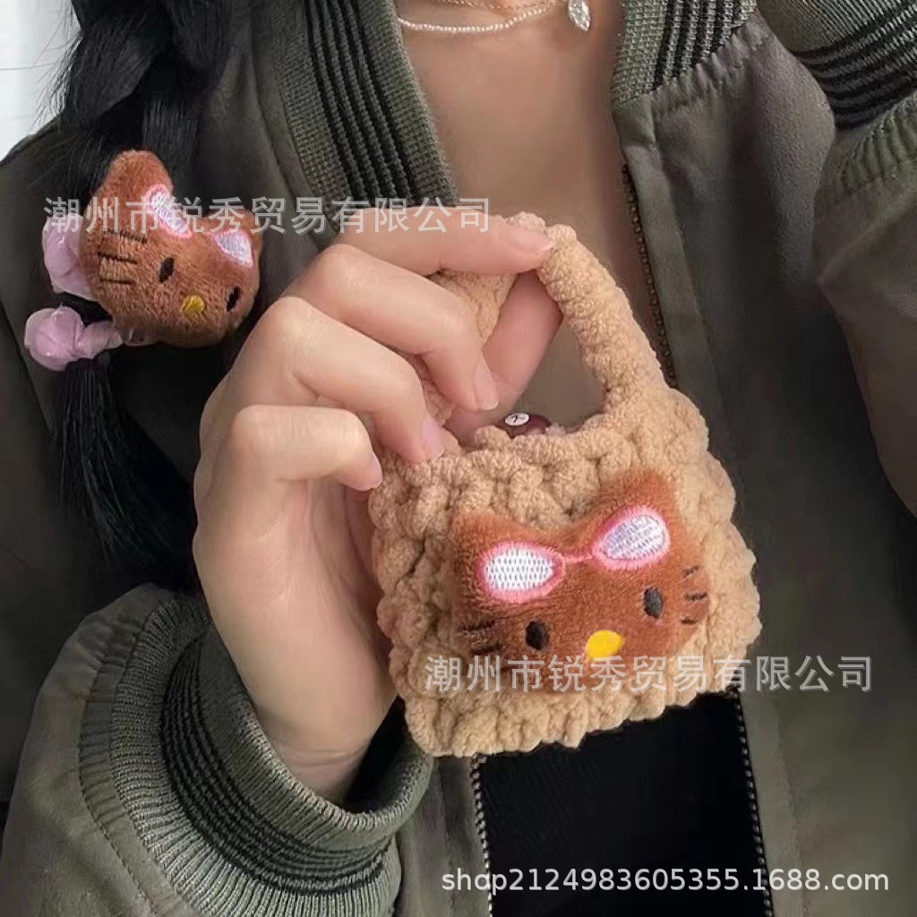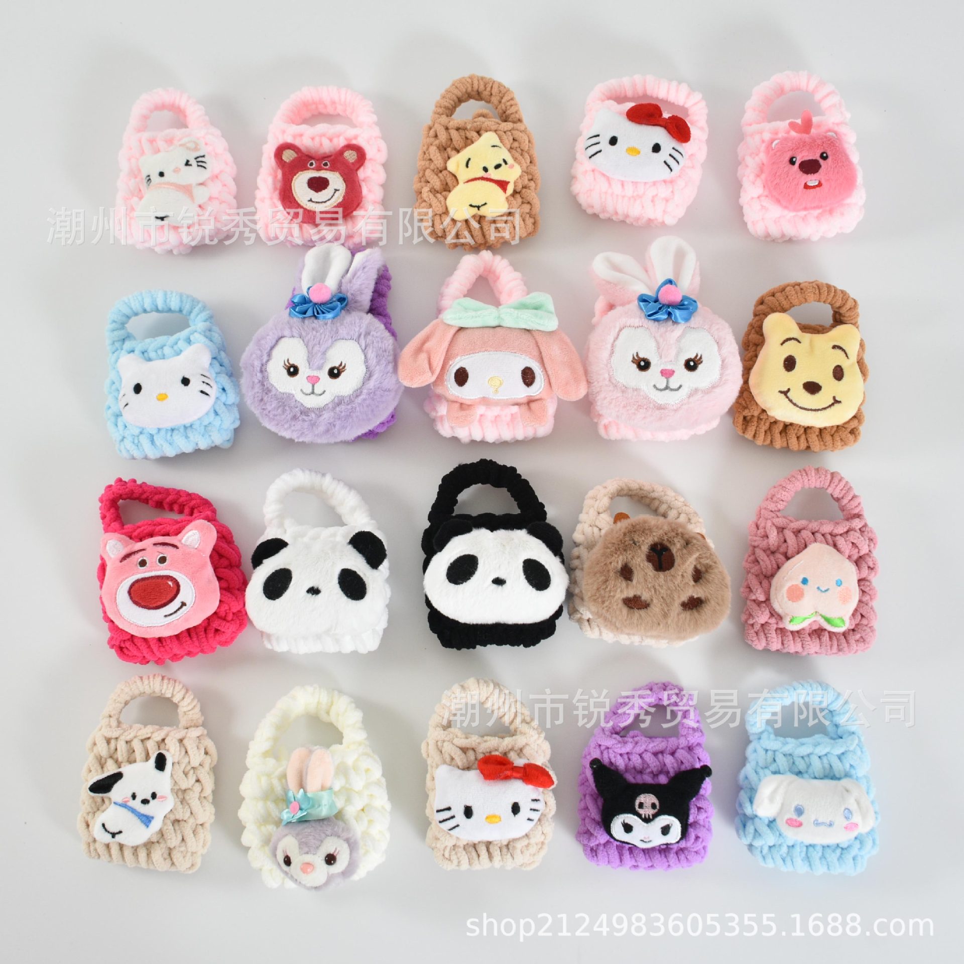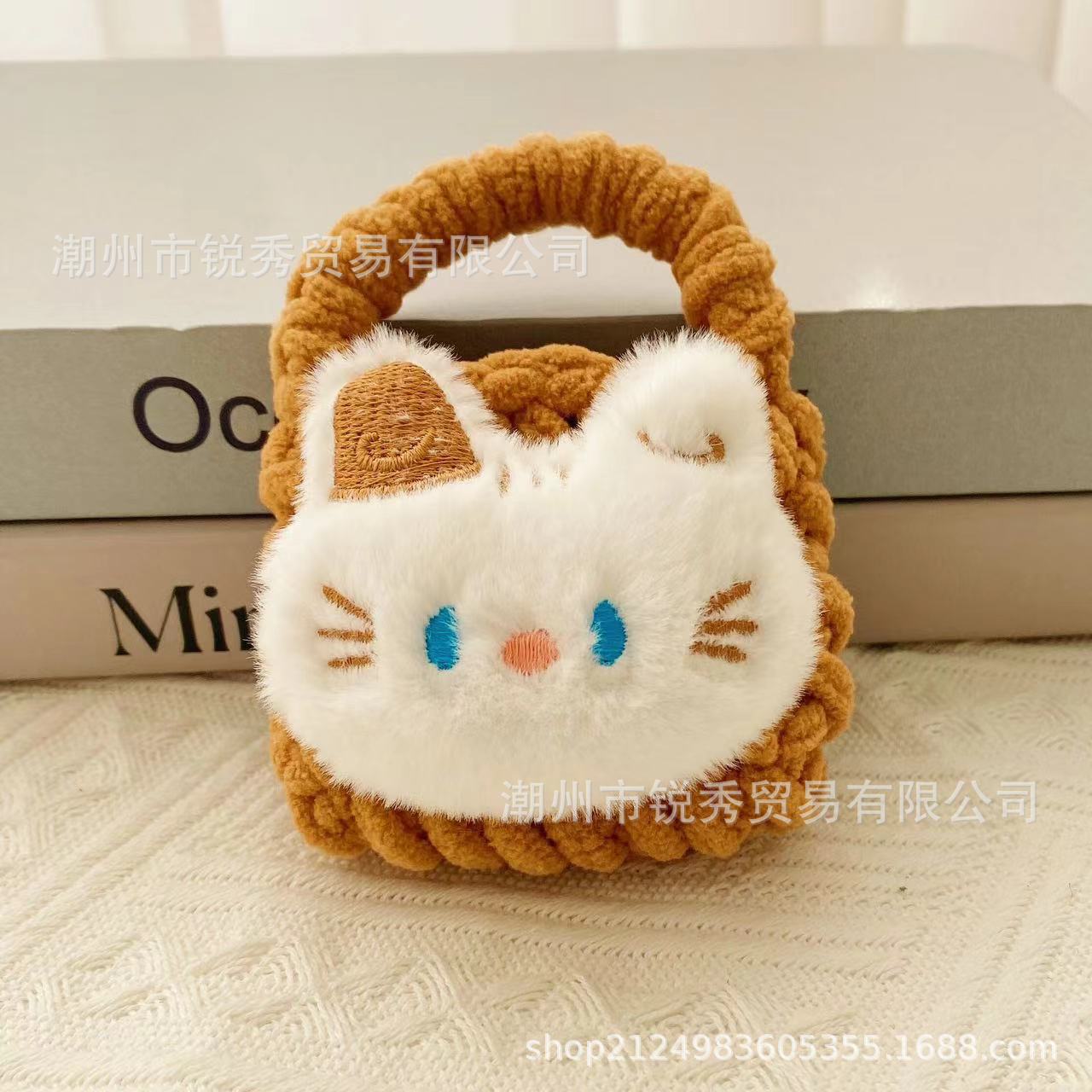 귀여운 만화 양모 TikTok 블라인드 박스 손으로 짠 헤드폰 가방 울 헤드폰 커버 미니 변경 보관 가방스토어 가기