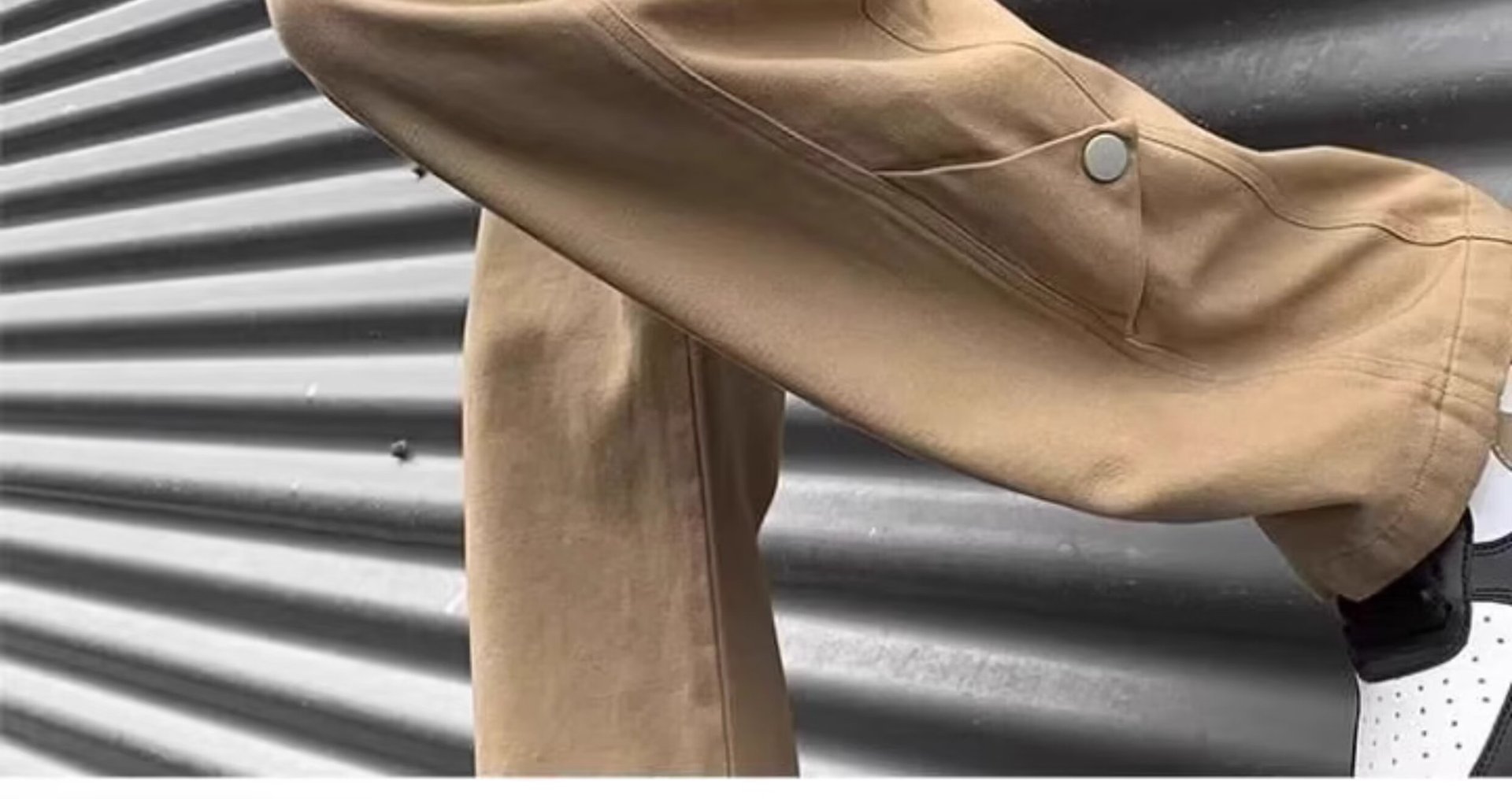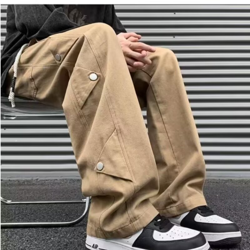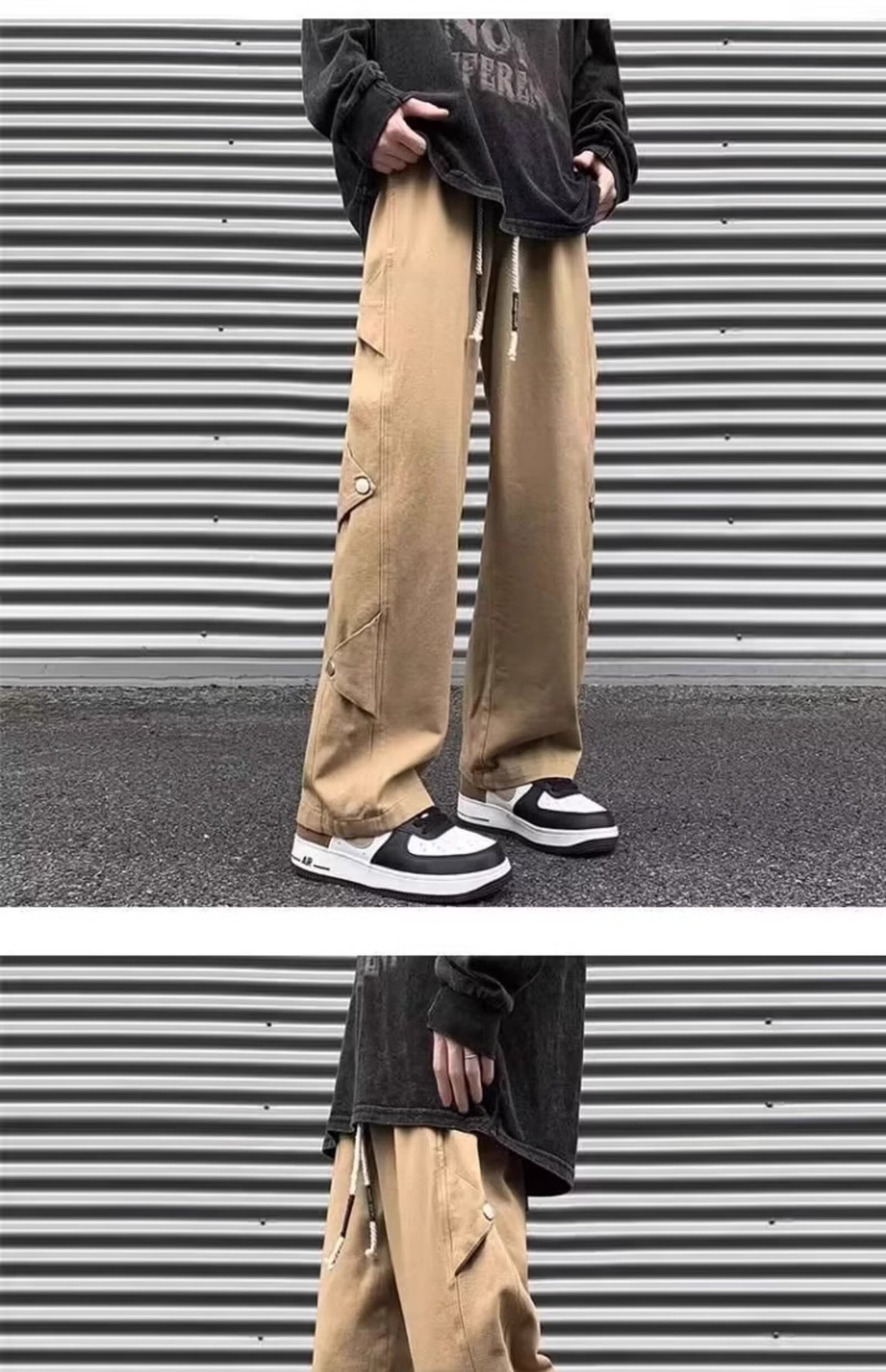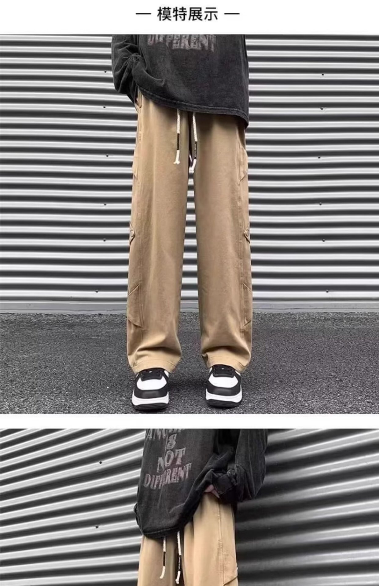 카키 아메리칸 스타일 바지 남자 가을과 겨울 2023 새로운 캐주얼 올 매치 스포츠 Ruan Shuai 하이 스트리트 와이드 레그 바지스토어 가기