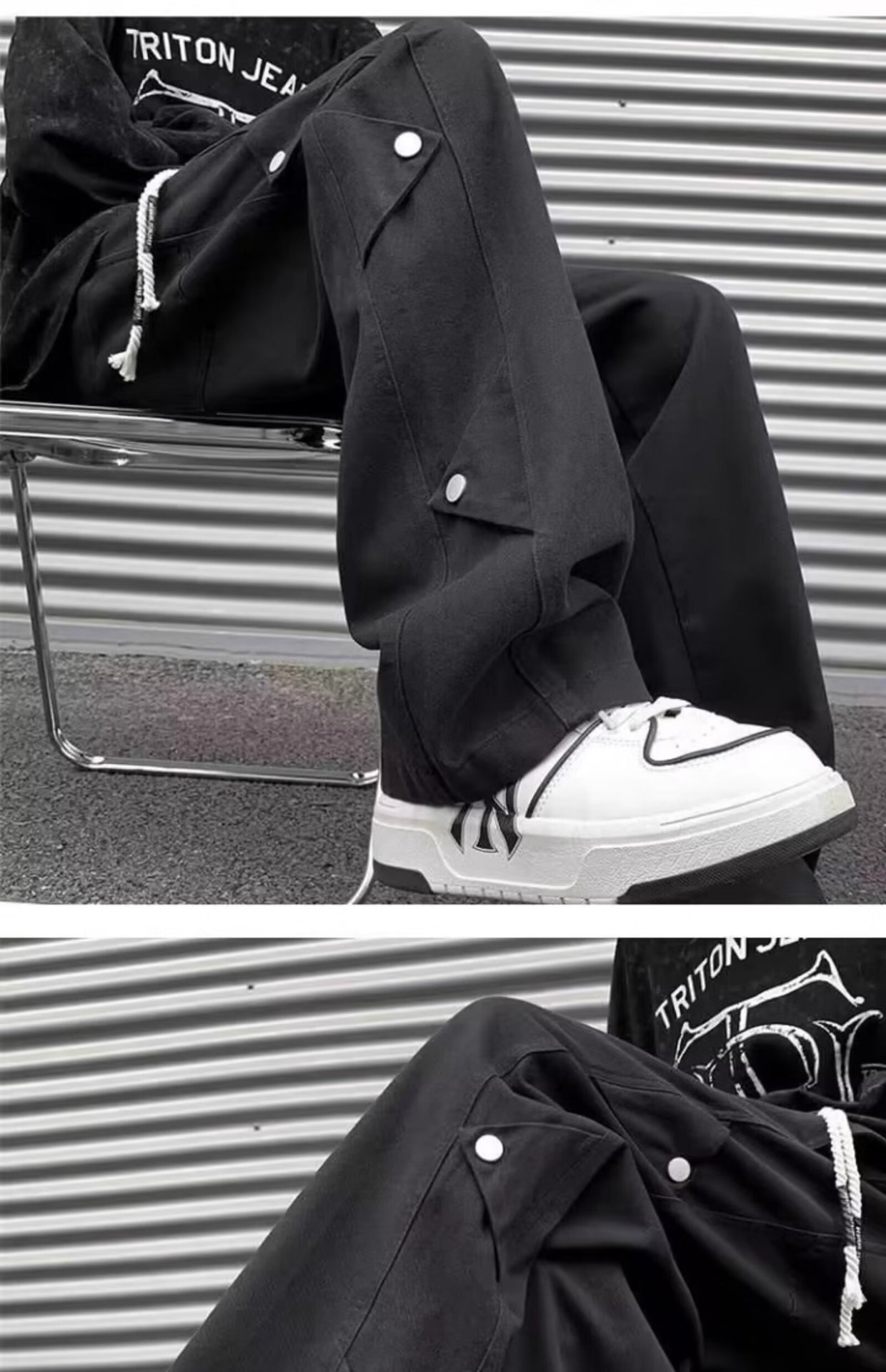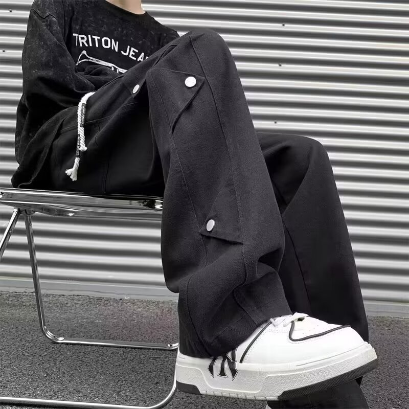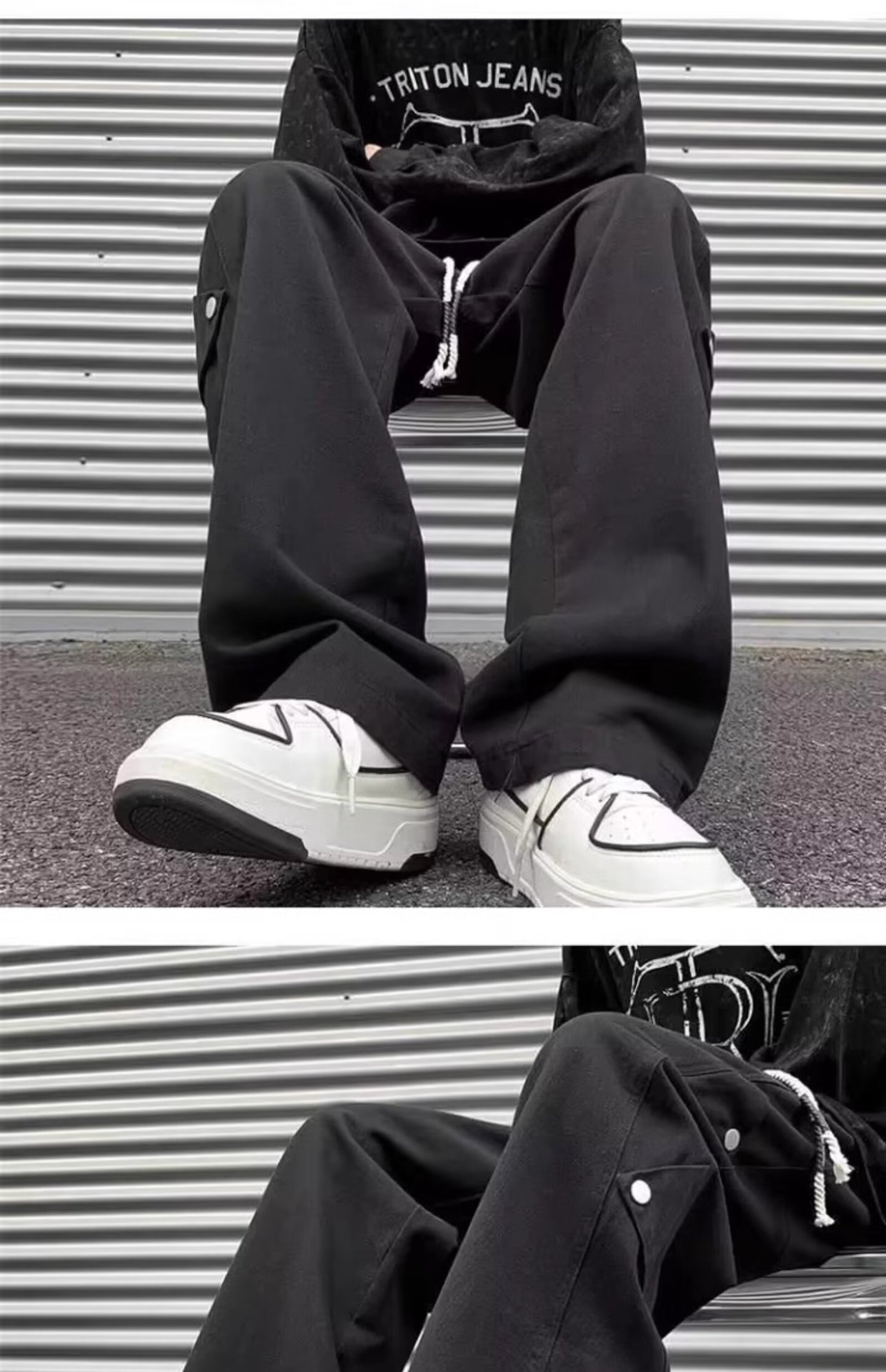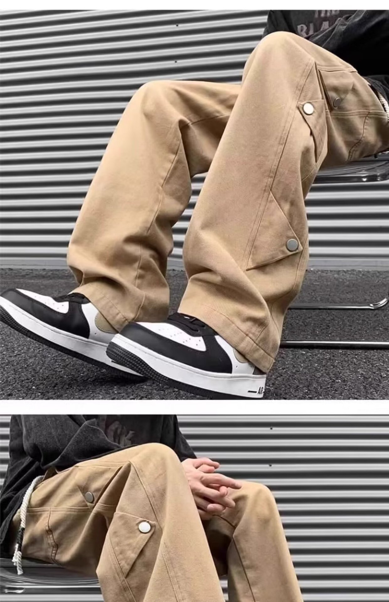 카키 아메리칸 스타일 바지 남자 가을과 겨울 2023 새로운 캐주얼 올 매치 스포츠 Ruan Shuai 하이 스트리트 와이드 레그 바지스토어 가기