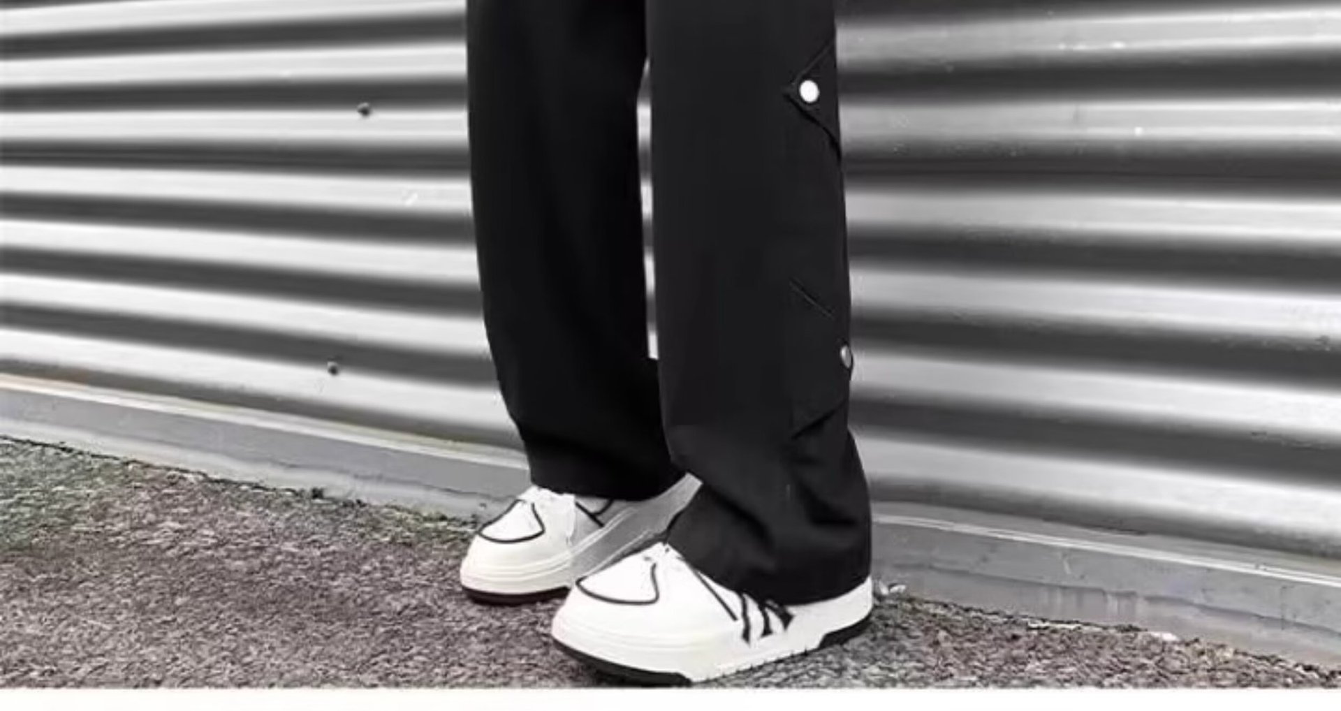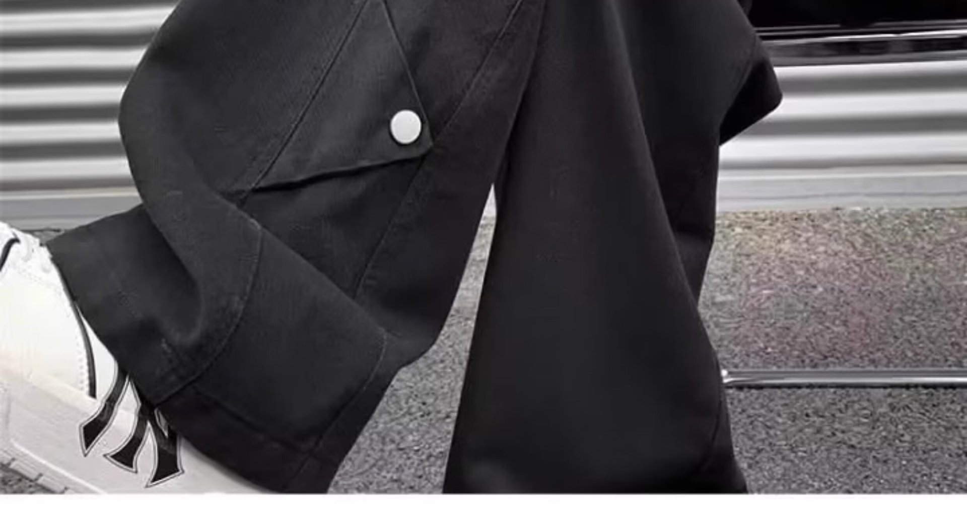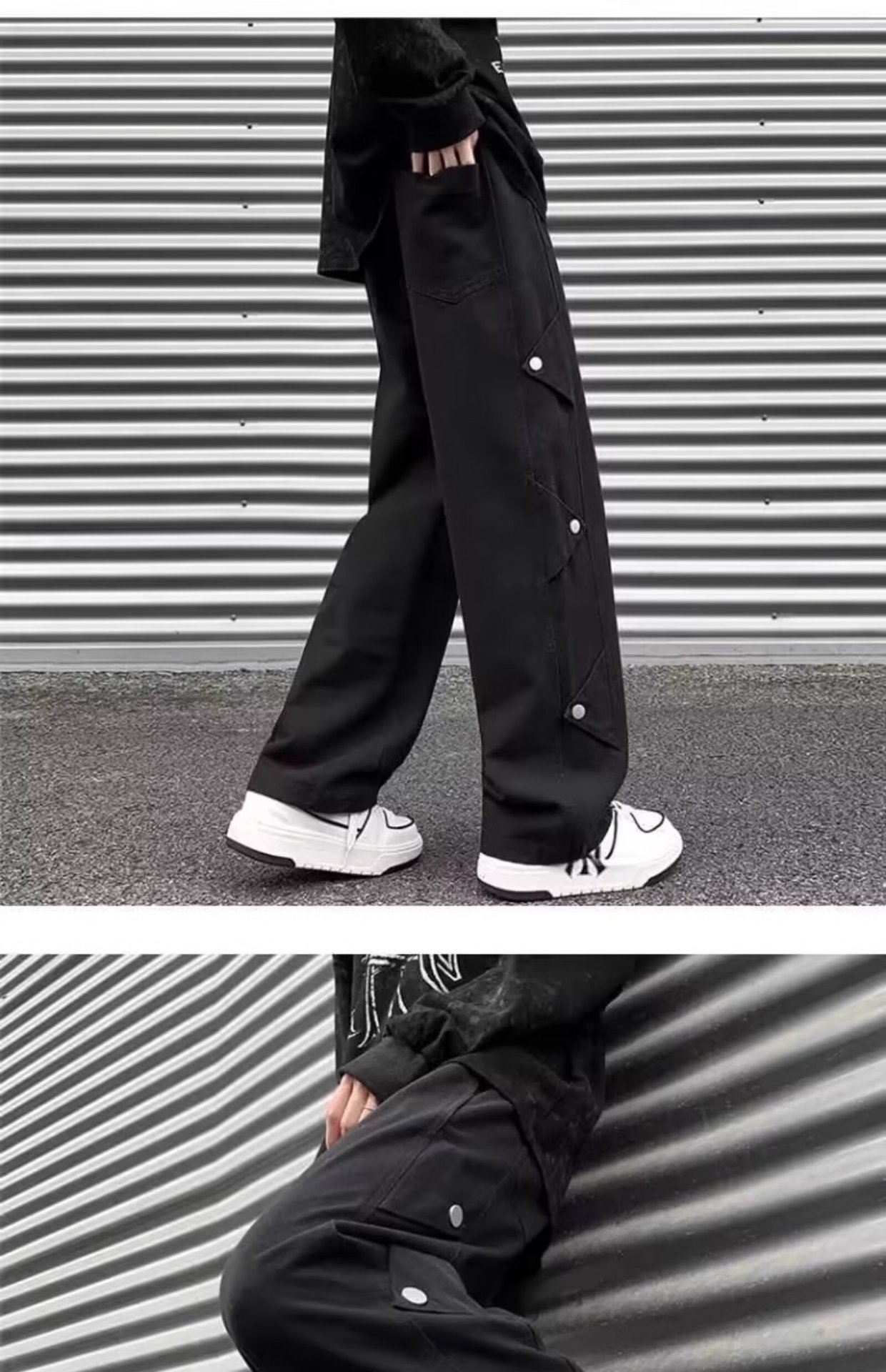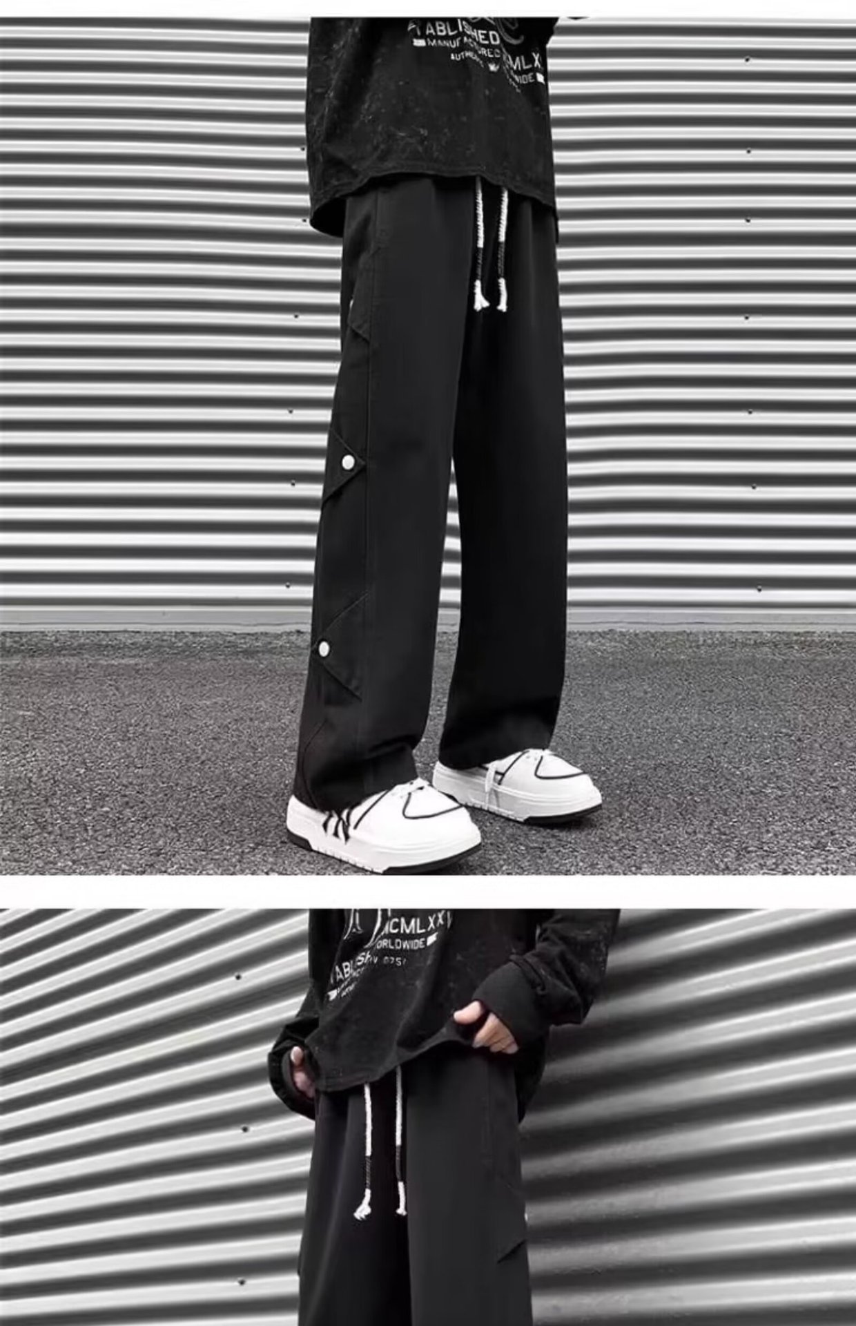 카키 아메리칸 스타일 바지 남자 가을과 겨울 2023 새로운 캐주얼 올 매치 스포츠 Ruan Shuai 하이 스트리트 와이드 레그 바지스토어 가기