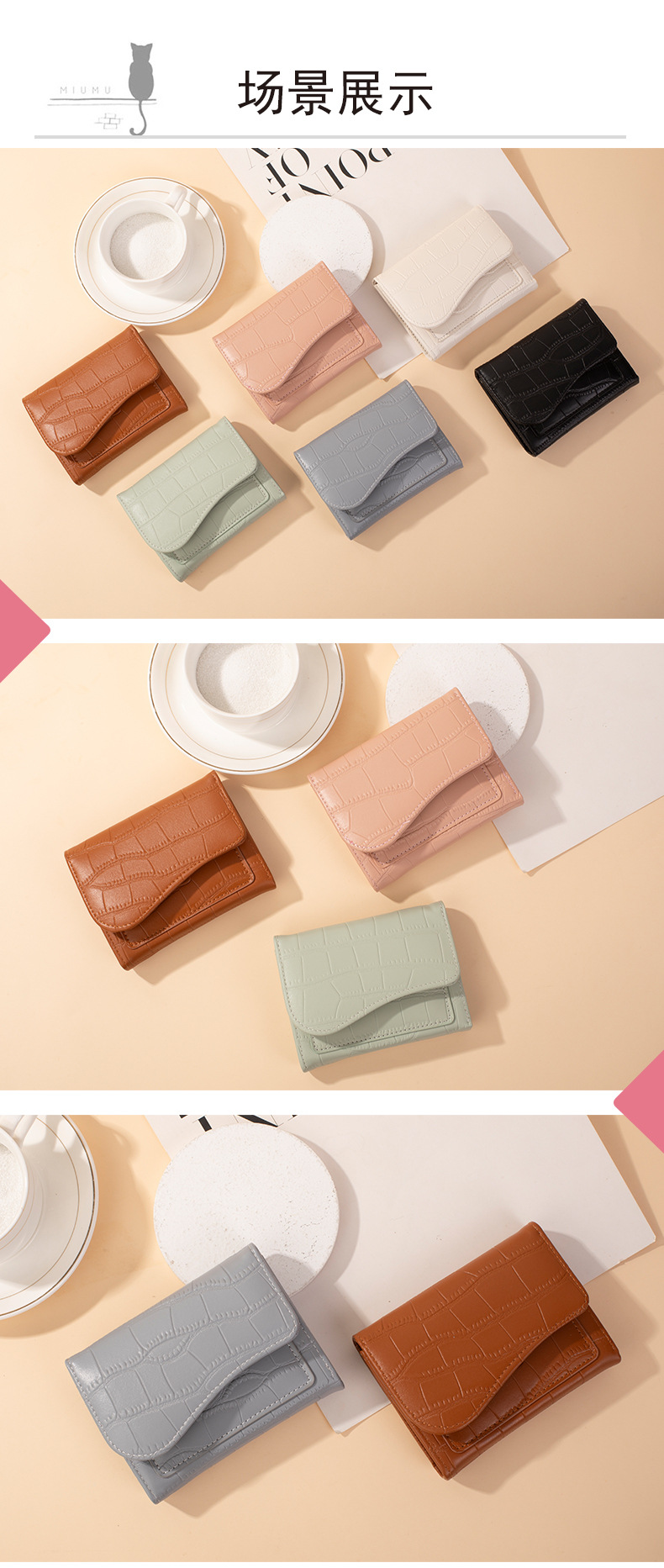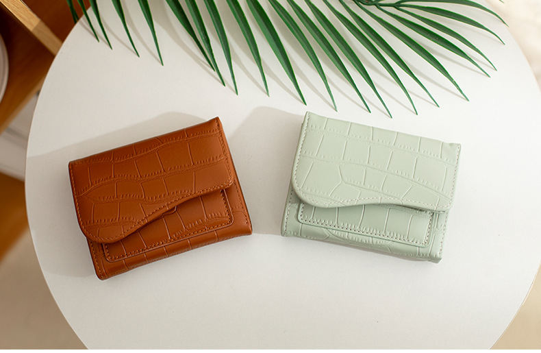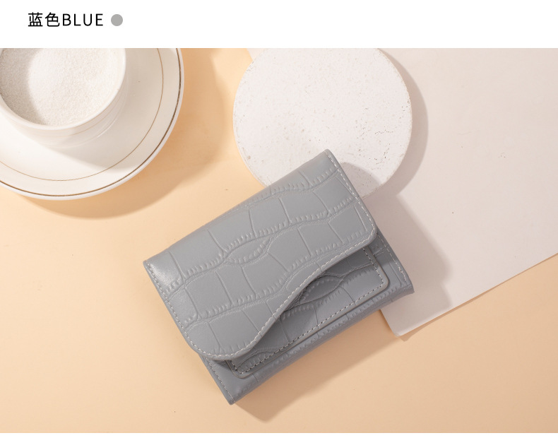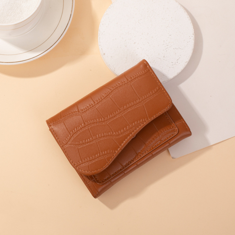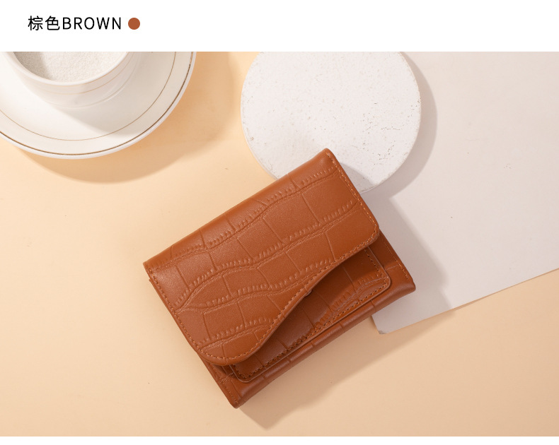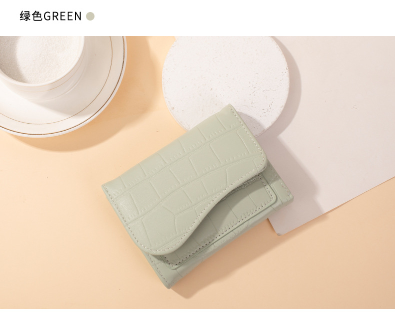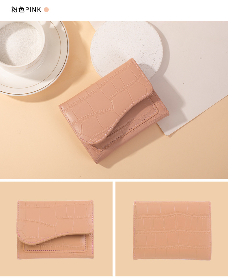 크로스보더 짧은 스타일 스톤 패턴 여성 지갑, 도시적인 심플한 단색 PU 다중 카드 슬롯 카드 지갑, 작고 다용도인 동전 지갑