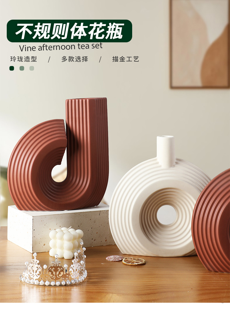 간단한 기하학적 예술 라인 세라믹 꽃병 창조적 인 생활 가정 장식 모델 룸 전시장 장식 꽃병
