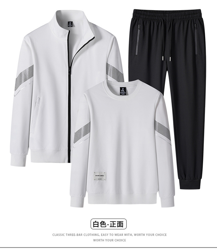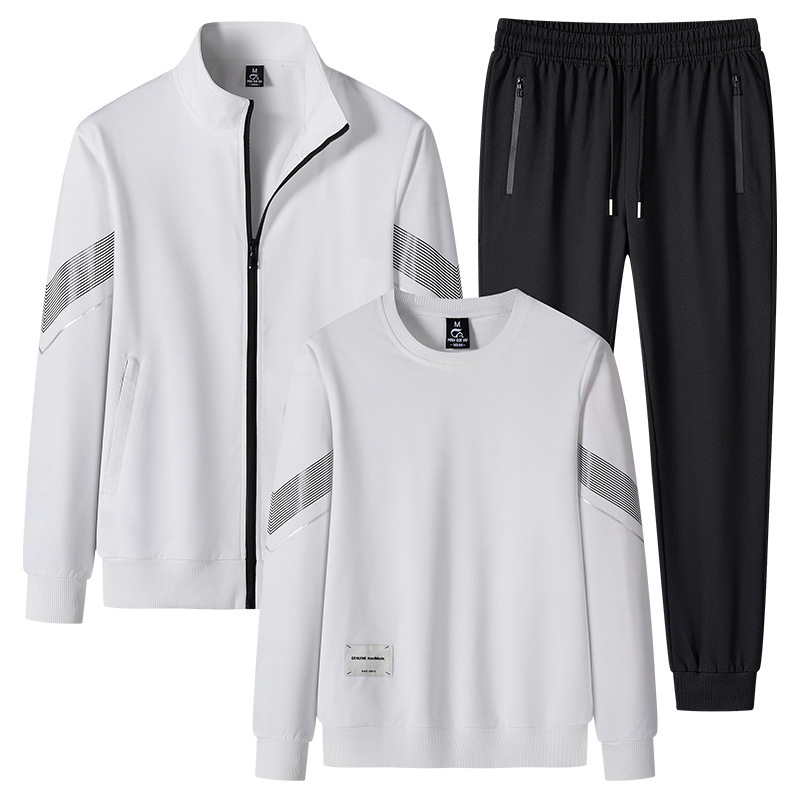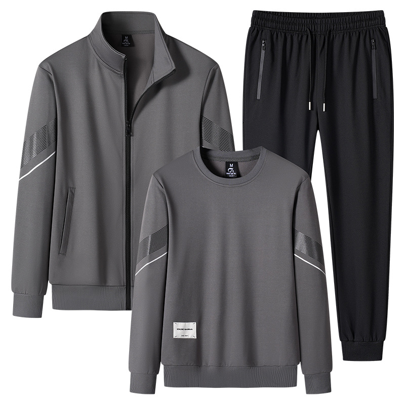 봄과 가을의 새로운 남성 스포츠 캐주얼 세트 카디건 스탠드 칼라 청소년 긴팔 스웨터 풀 세트 라운드 넥 3 피스 세트