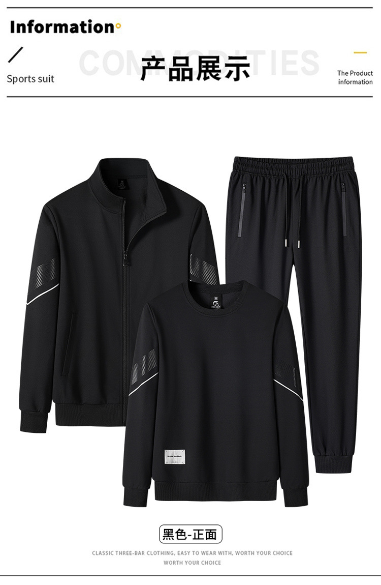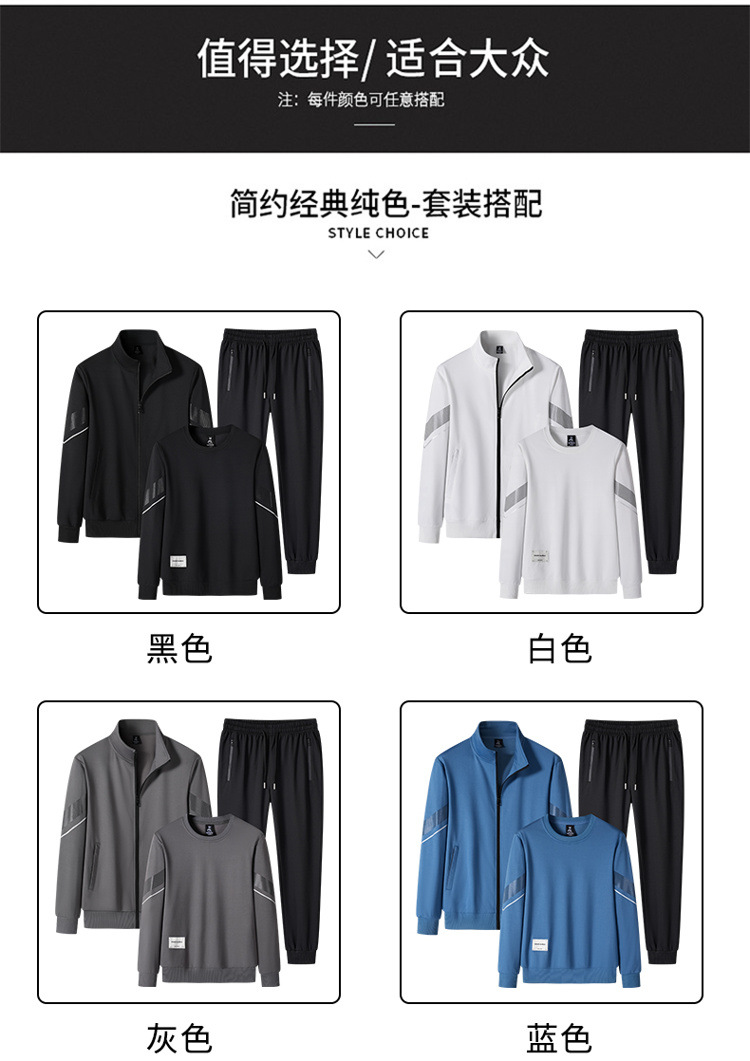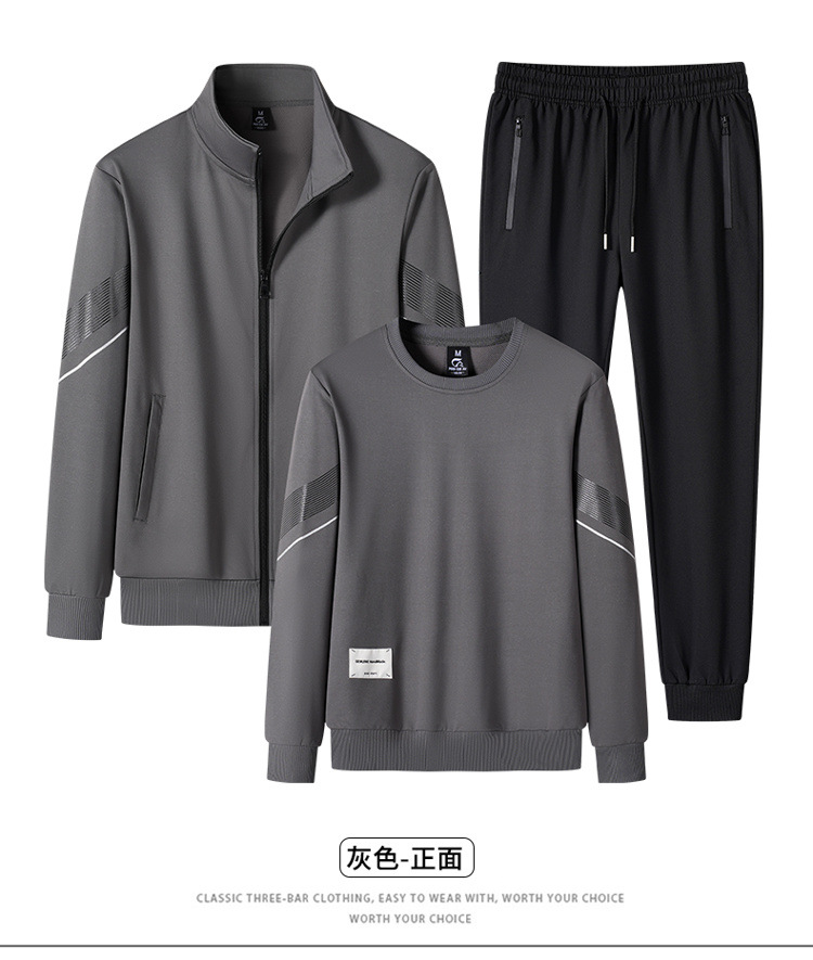 봄과 가을의 새로운 남성 스포츠 캐주얼 세트 카디건 스탠드 칼라 청소년 긴팔 스웨터 풀 세트 라운드 넥 3 피스 세트스토어 가기