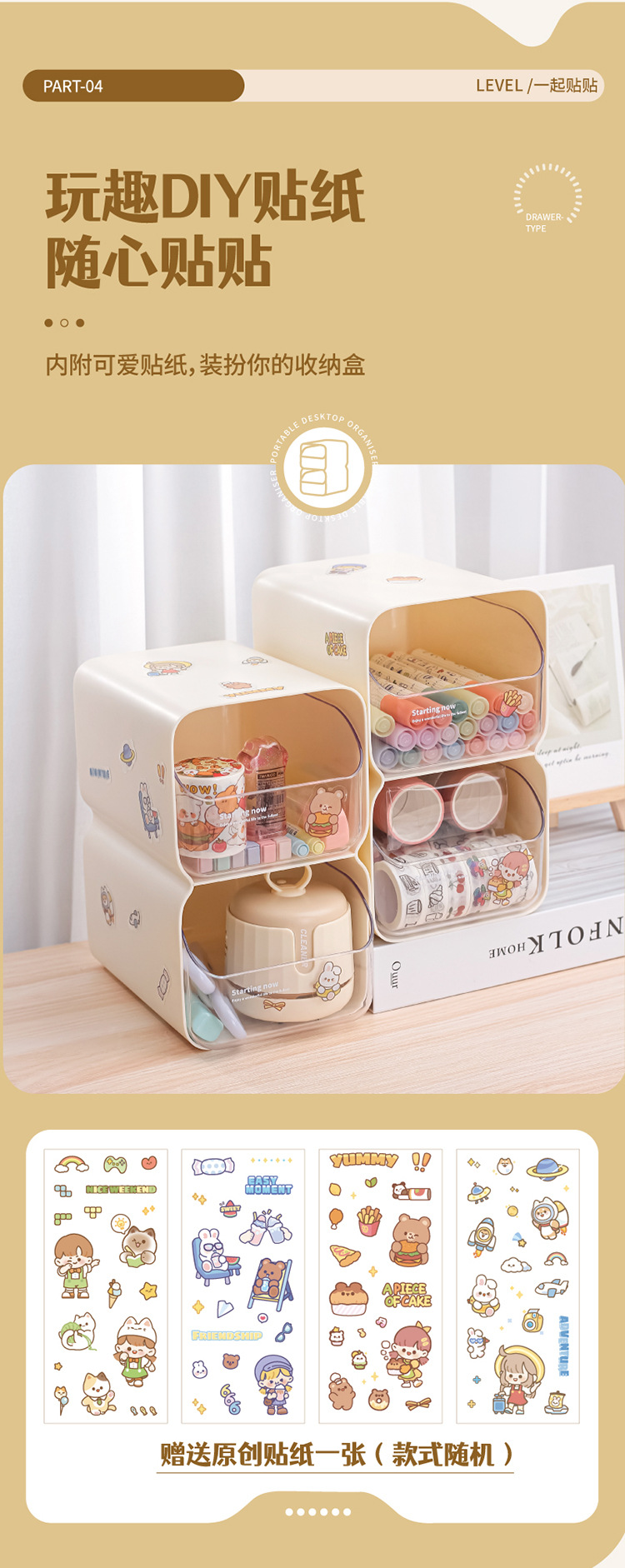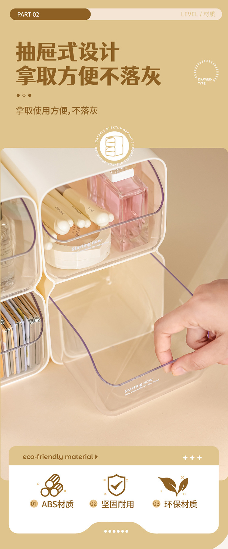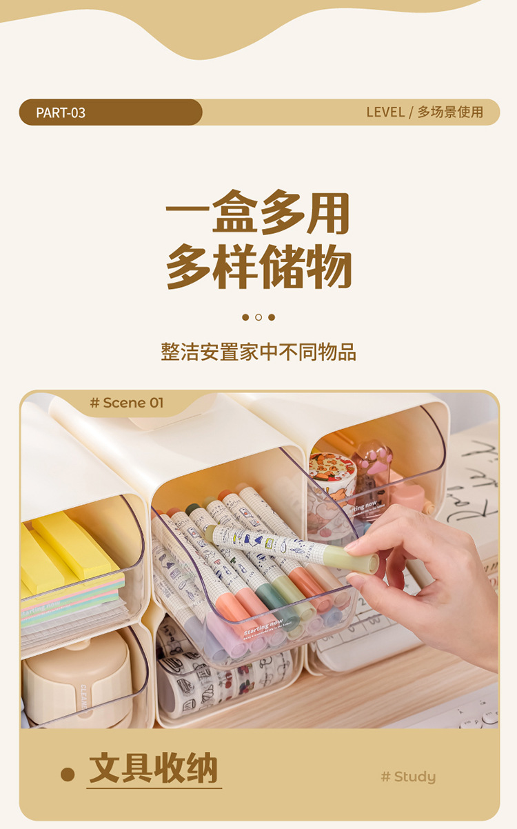 데스크탑 저장 상자 서랍 유형 책상 문구 보관 랙 투명한 대용량 펜 홀더 화장품 잡화 마감 상자