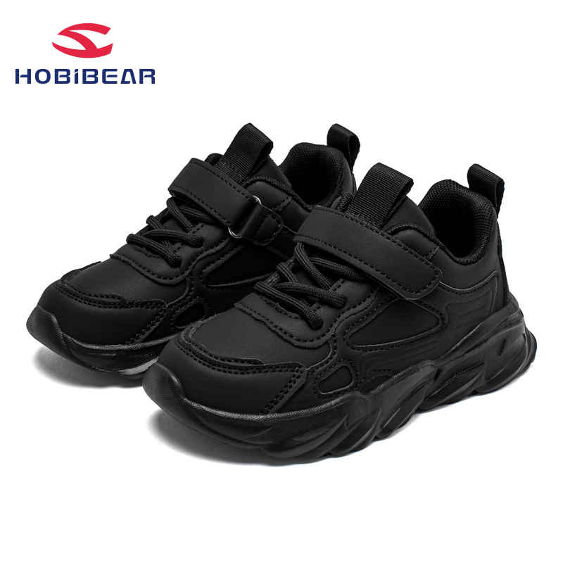 Habbear 가죽 표면 운동화 봄 뉴 보이즈 가죽 블랙 신발 소녀의 얼룩에 강한 캐주얼 신발 원피스 배달