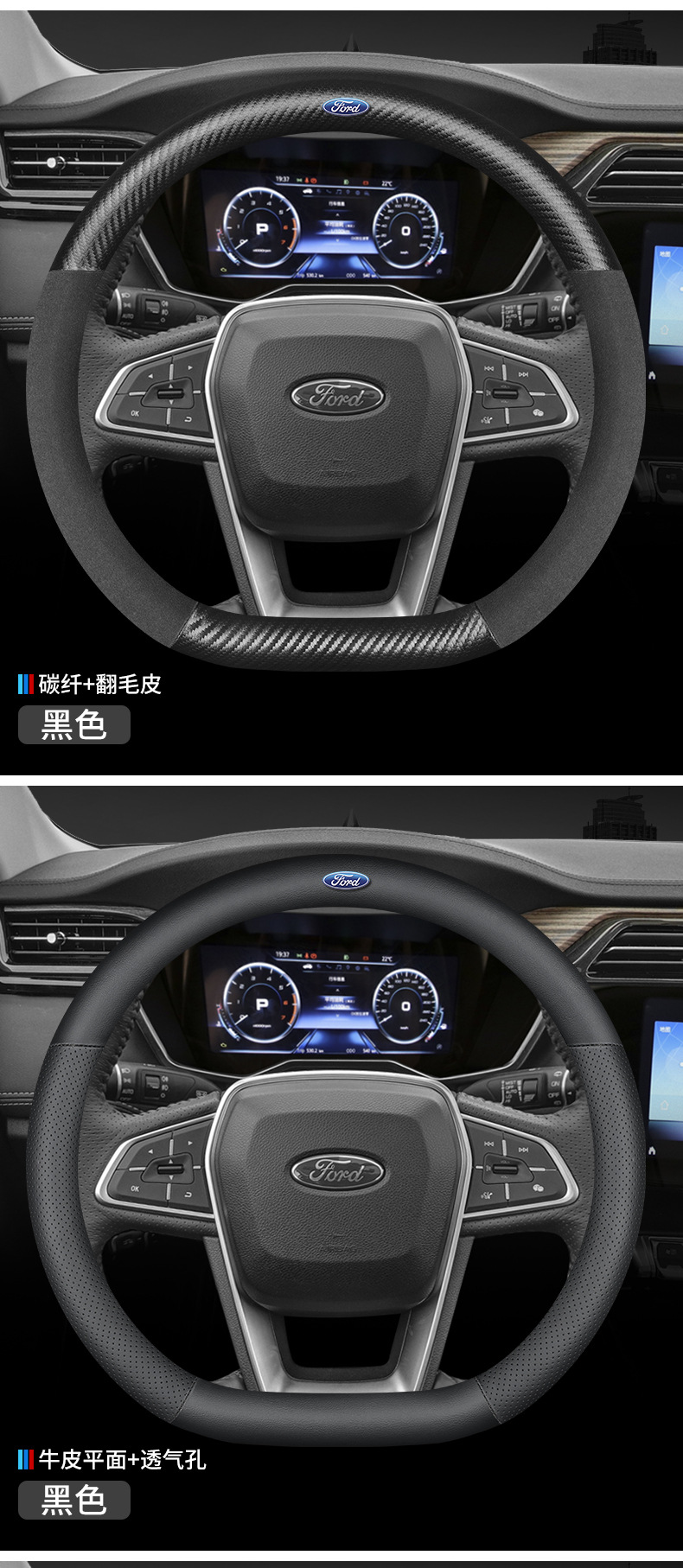 • 자동차 로고가없는 D 형 스웨이드 + 탄소 섬유 가죽-블랙 스타일