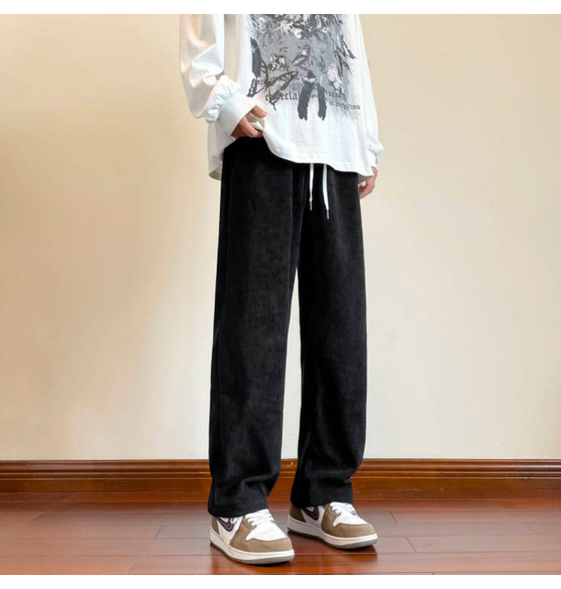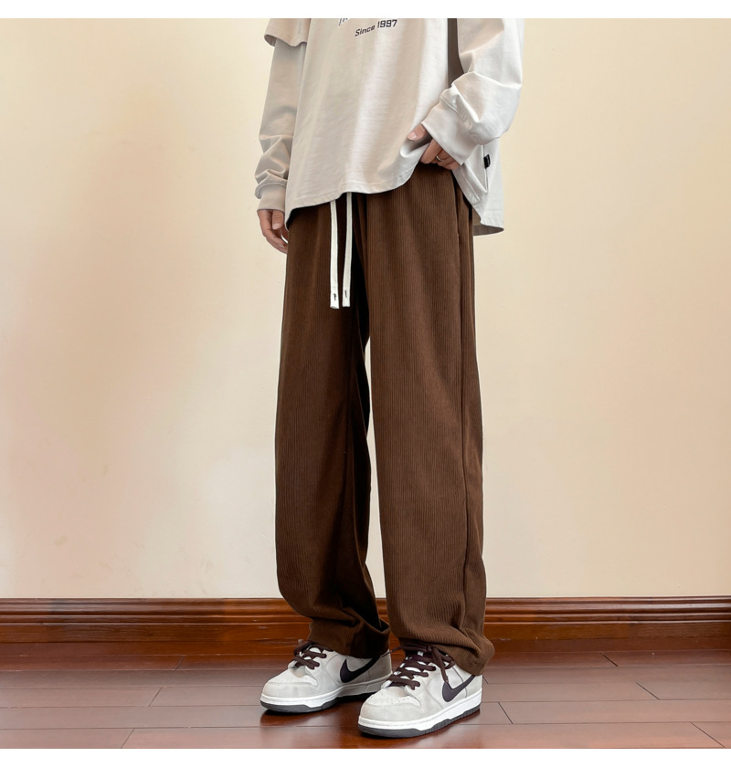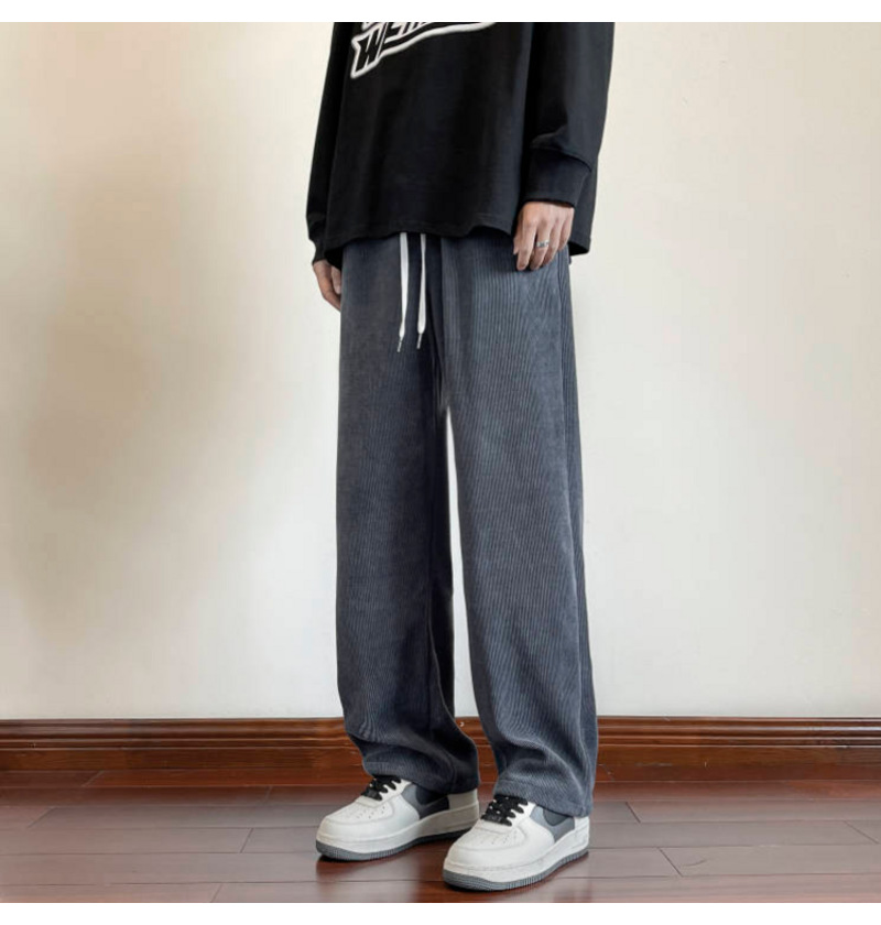캐주얼 남성 봄과 가을 한국 스타일의 트렌디 한 느슨한 스트레이트 스포츠 바지 홍콩 스타일 복고풍 드레이핑 걸레 팬츠