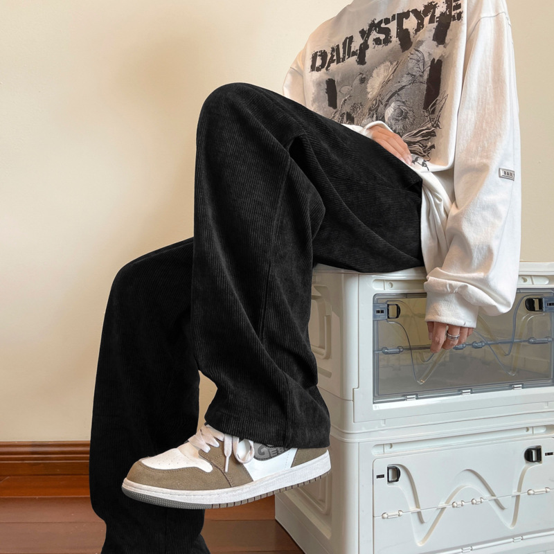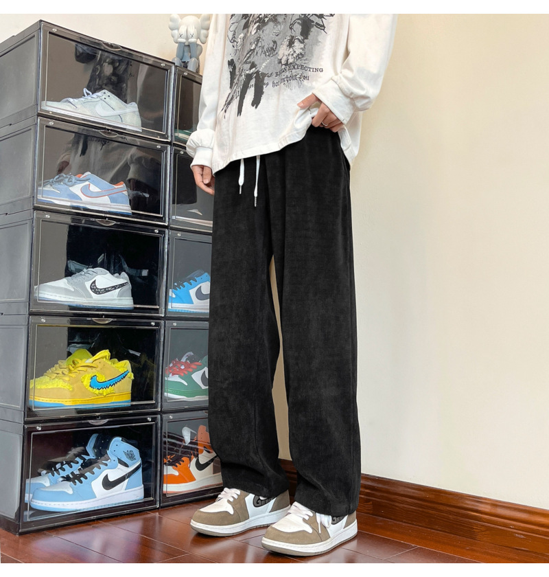 캐주얼 남성 봄과 가을 한국 스타일의 트렌디 한 느슨한 스트레이트 스포츠 바지 홍콩 스타일 복고풍 드레이핑 걸레 팬츠스토어 가기