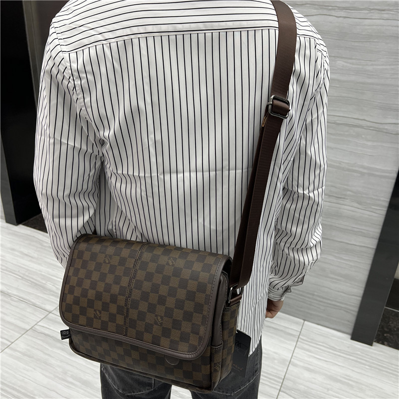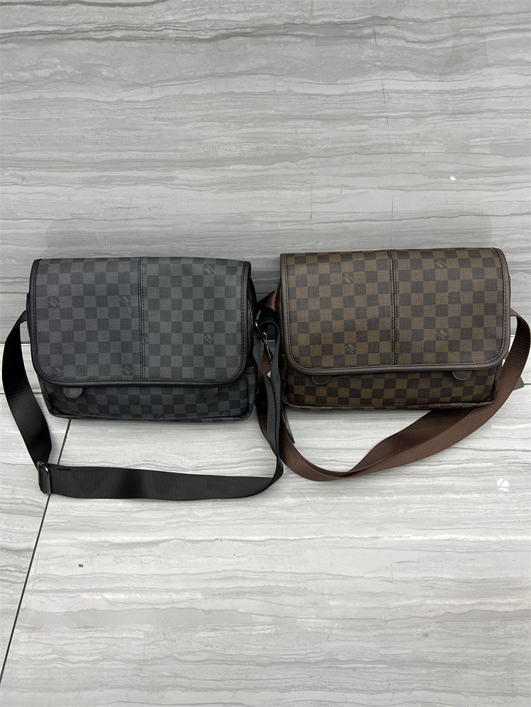 threebox新品男士格子斜挎包 日韩PU单肩包ins机车邮差包男女背包