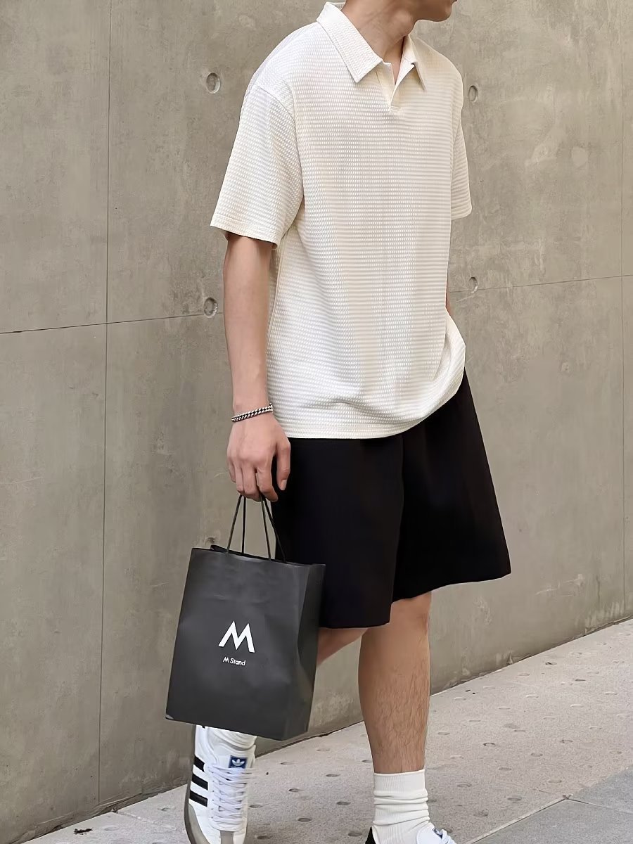 여름 새로운 반팔 폴로 셔츠 남성용 느슨한 옷깃 티셔츠 질감 한국식 반소매 드롭 캐주얼 탑스토어 가기