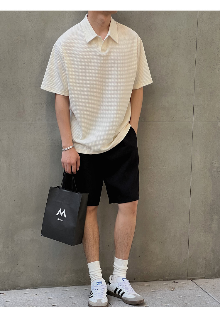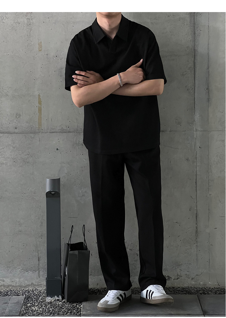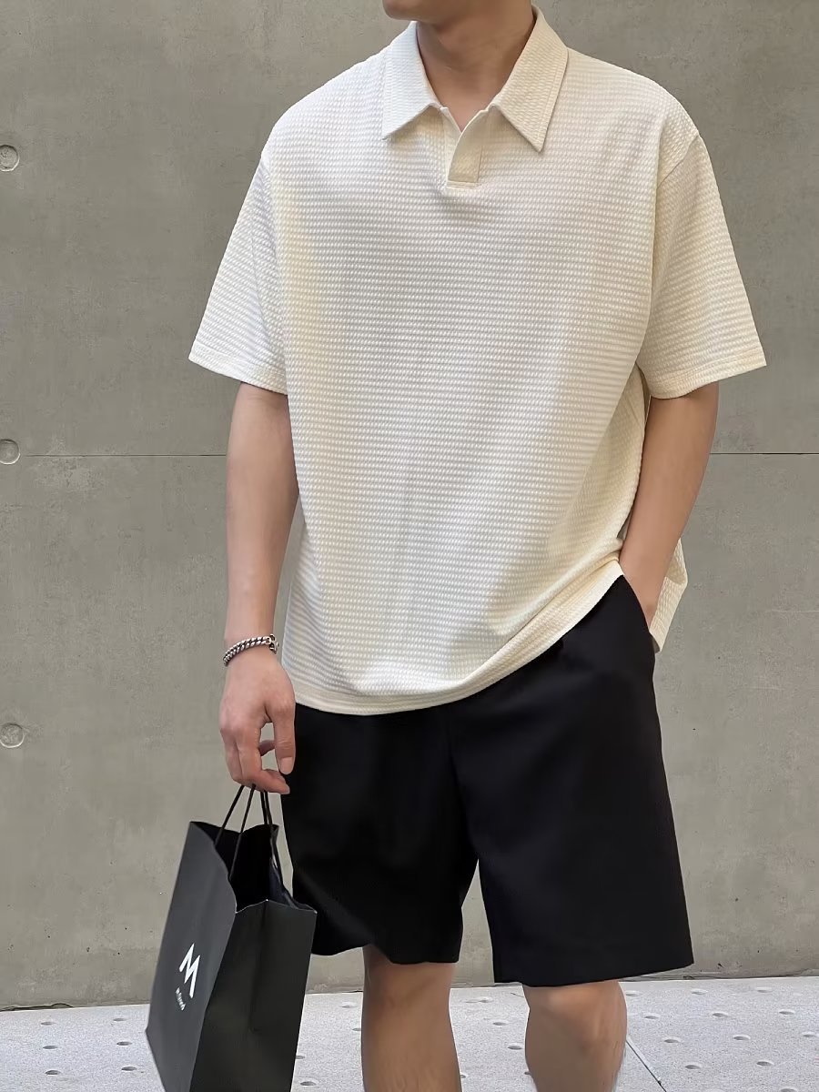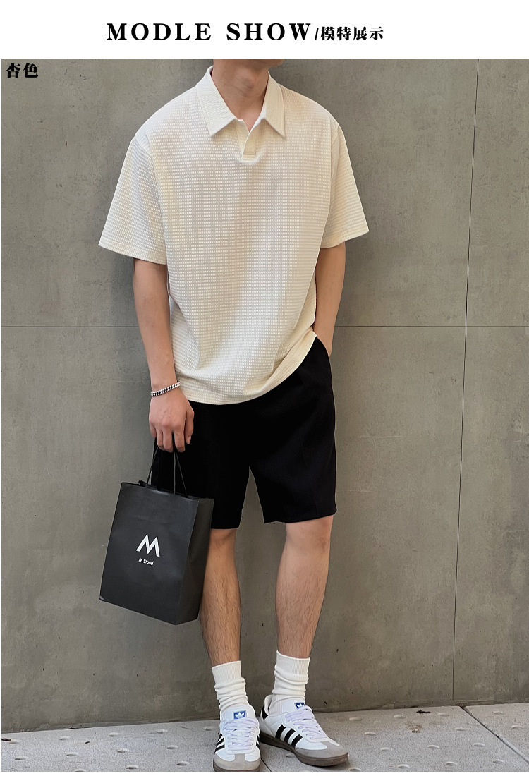 여름 새로운 반팔 폴로 셔츠 남성용 느슨한 옷깃 티셔츠 질감 한국식 반소매 드롭 캐주얼 탑