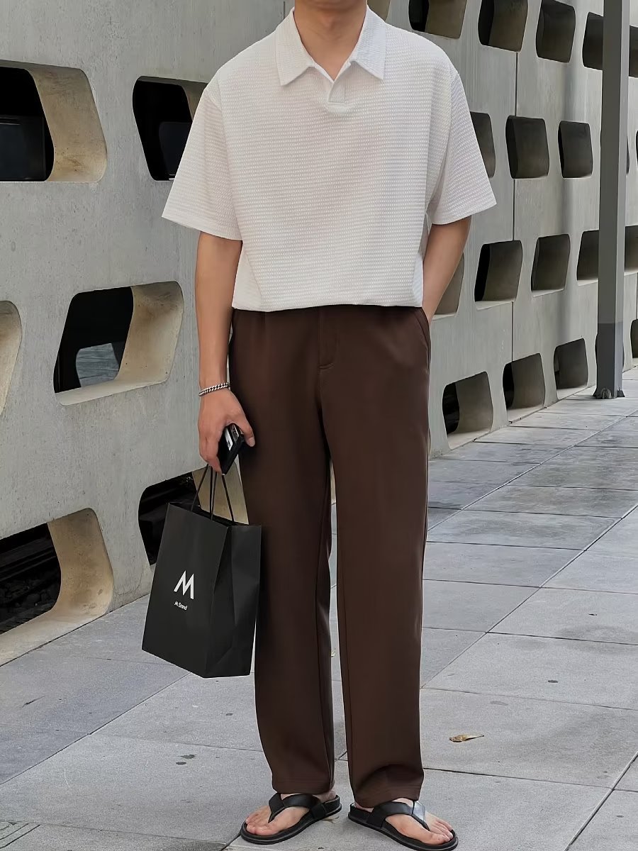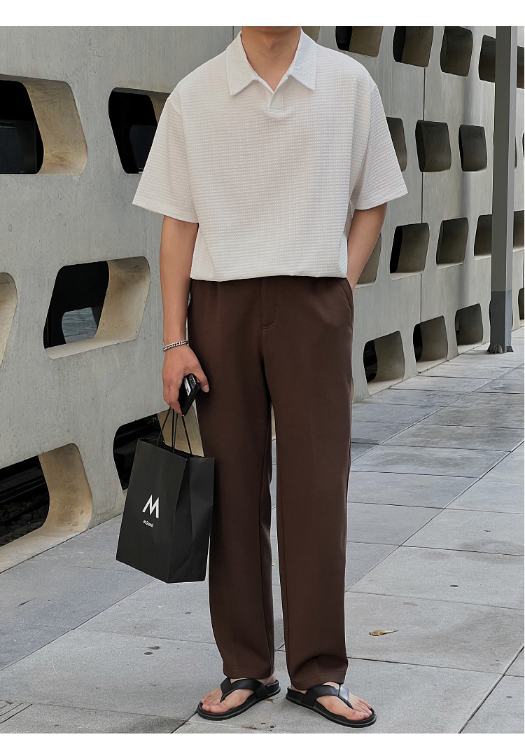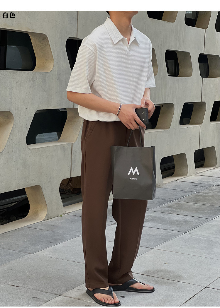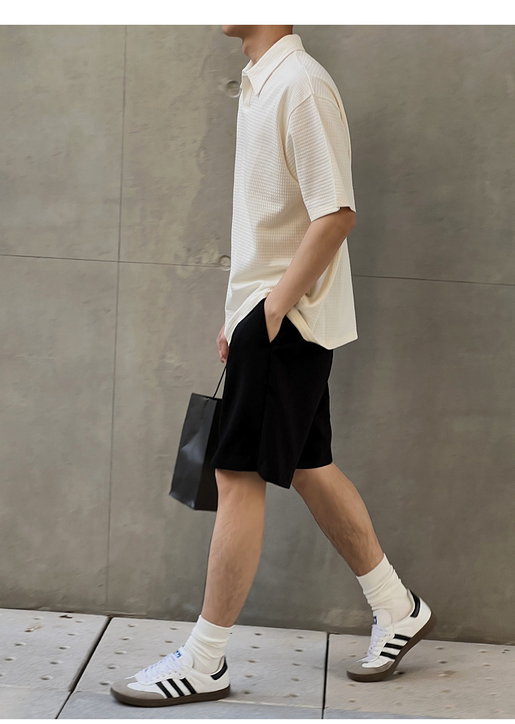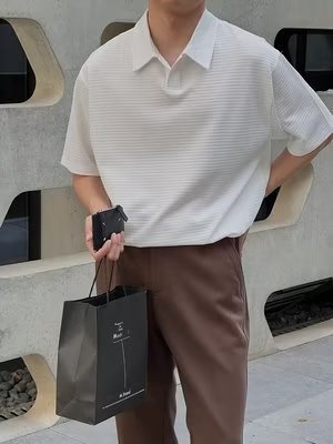 여름 새로운 반팔 폴로 셔츠 남성용 느슨한 옷깃 티셔츠 질감 한국식 반소매 드롭 캐주얼 탑