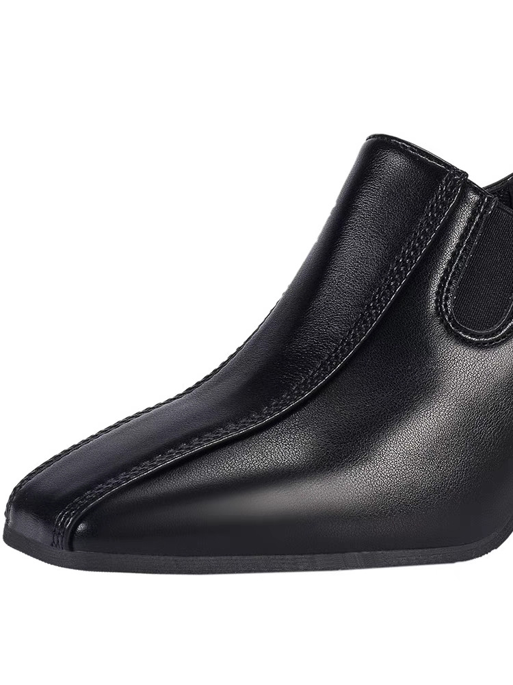 여성용 우아한 청키 힐 싱글 레이어 신발 2024 새로운 영국 스타일 한국식 정사각형 발가락 깊은 입 하이힐 전문 통근 가죽 신발