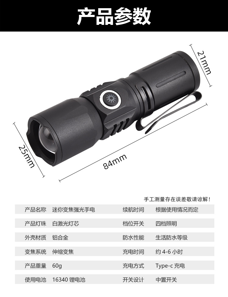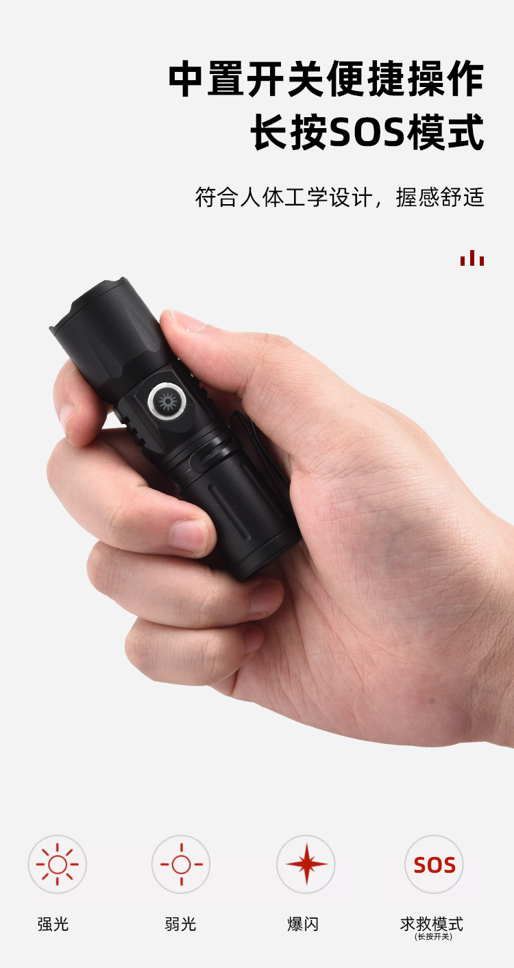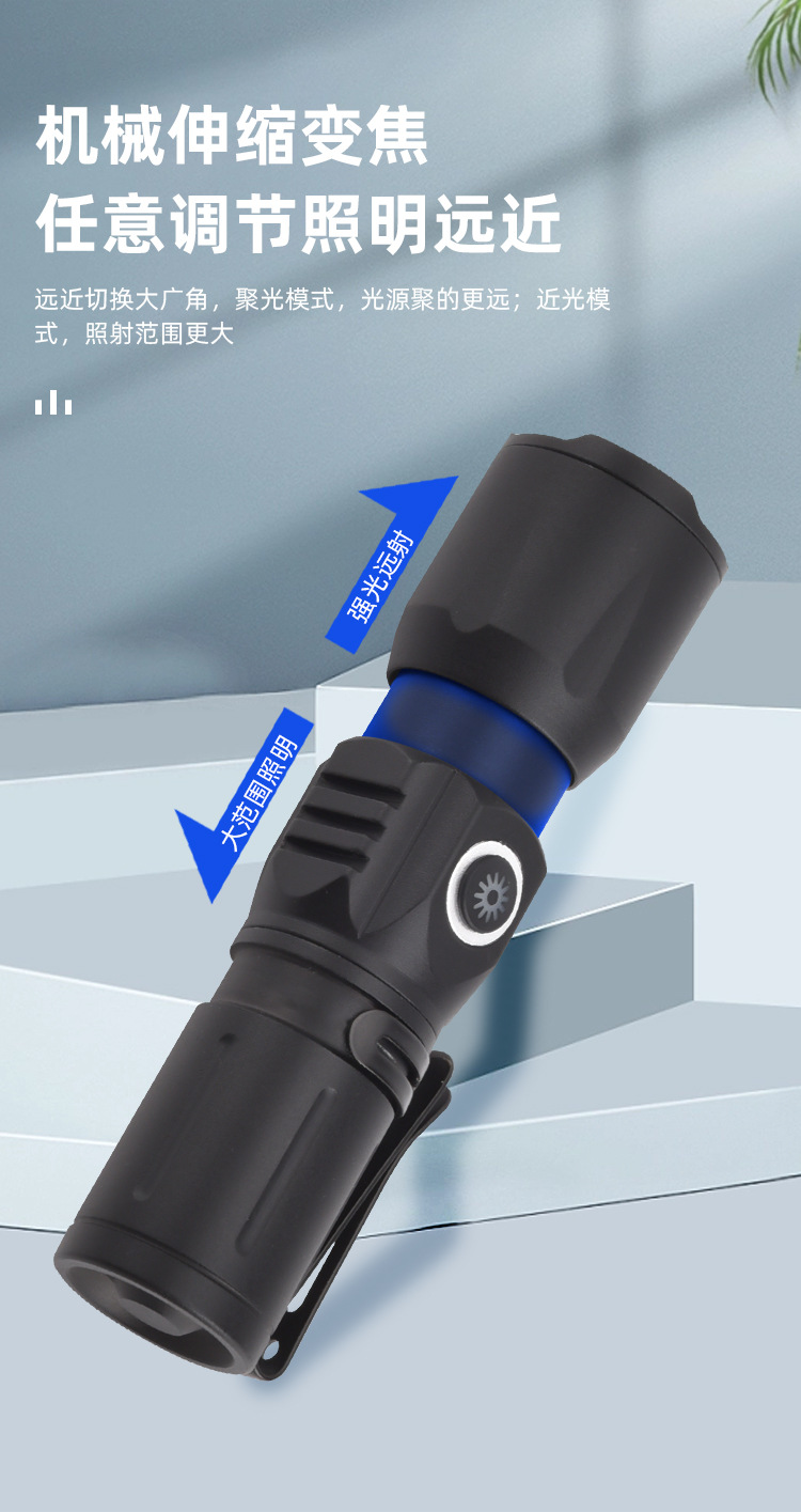 도매 미니 강력한 빛과 긴 배터리 수명을 가진 손전등 야외 조명 손전등 충전식 휴대용 알루미늄 합금 리튬 배터리 손전등스토어 가기
